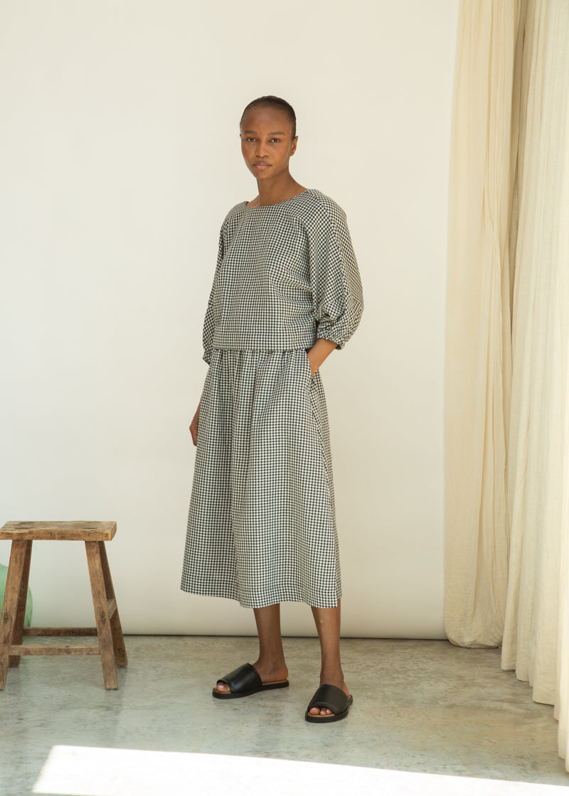 Goldie-Cay Organic Cotton Double Gauze Skirt in Monochrome Gingham
