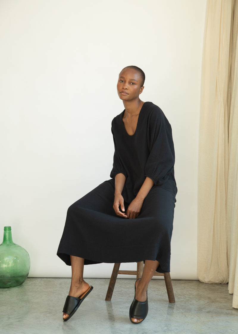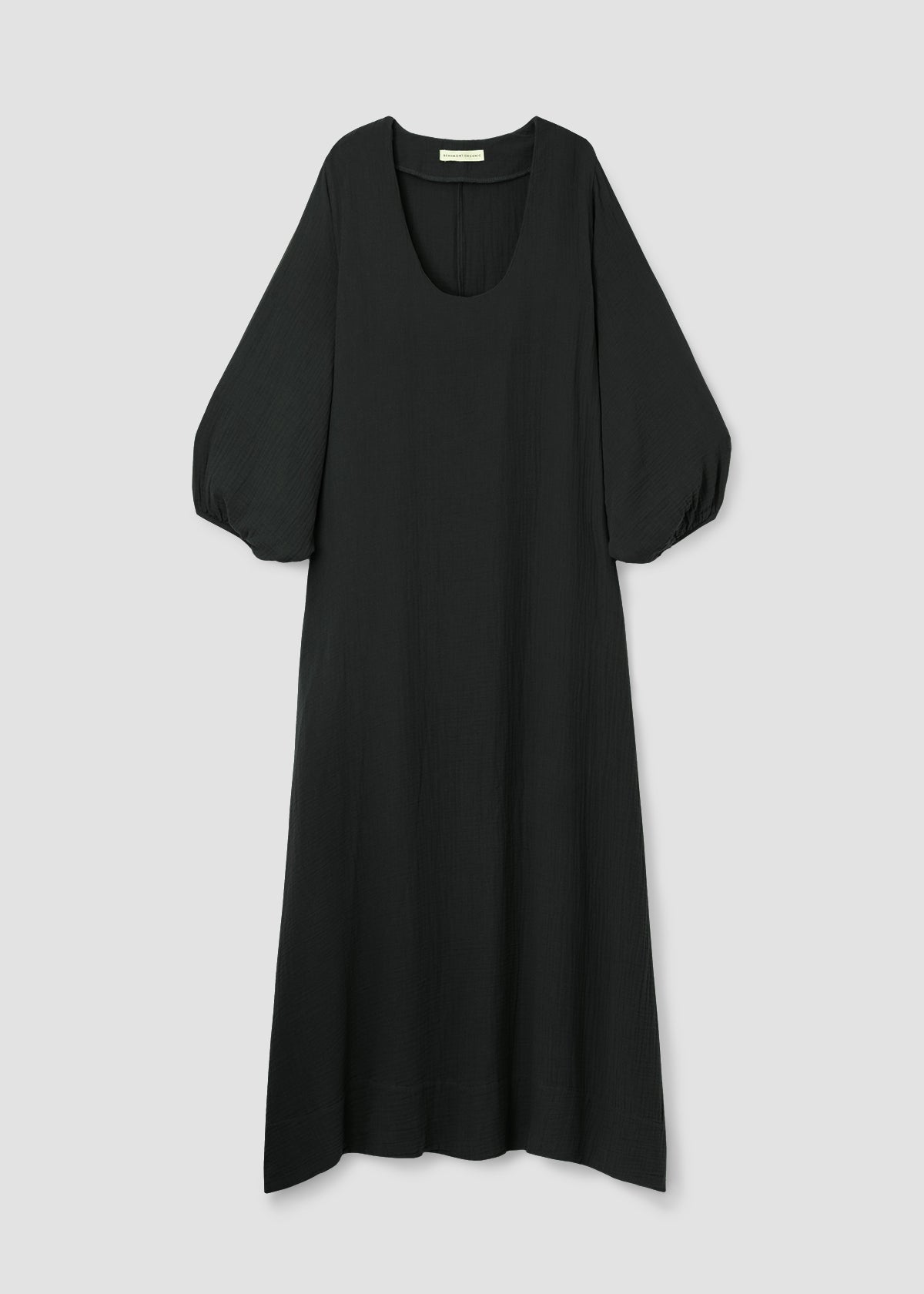 Henrietta Organic Cotton Cheesecloth Dress in Black
