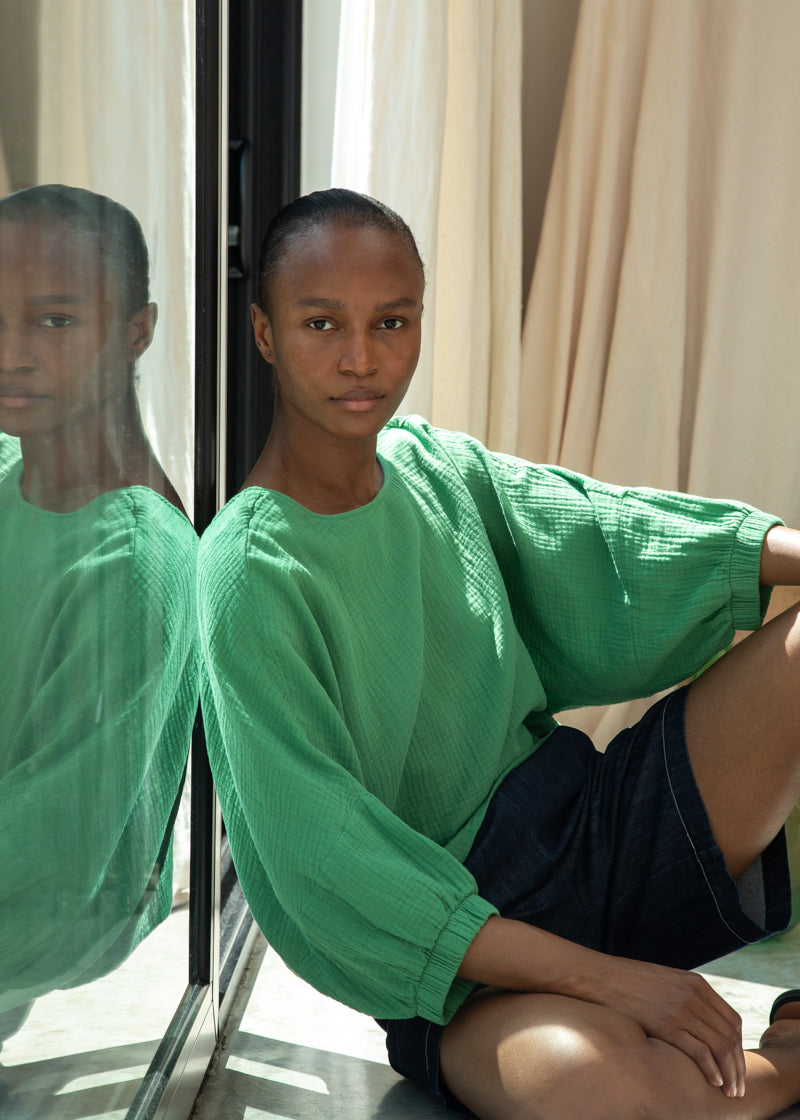 Ivy Organic Cotton Cheesecloth Top in Palm Green