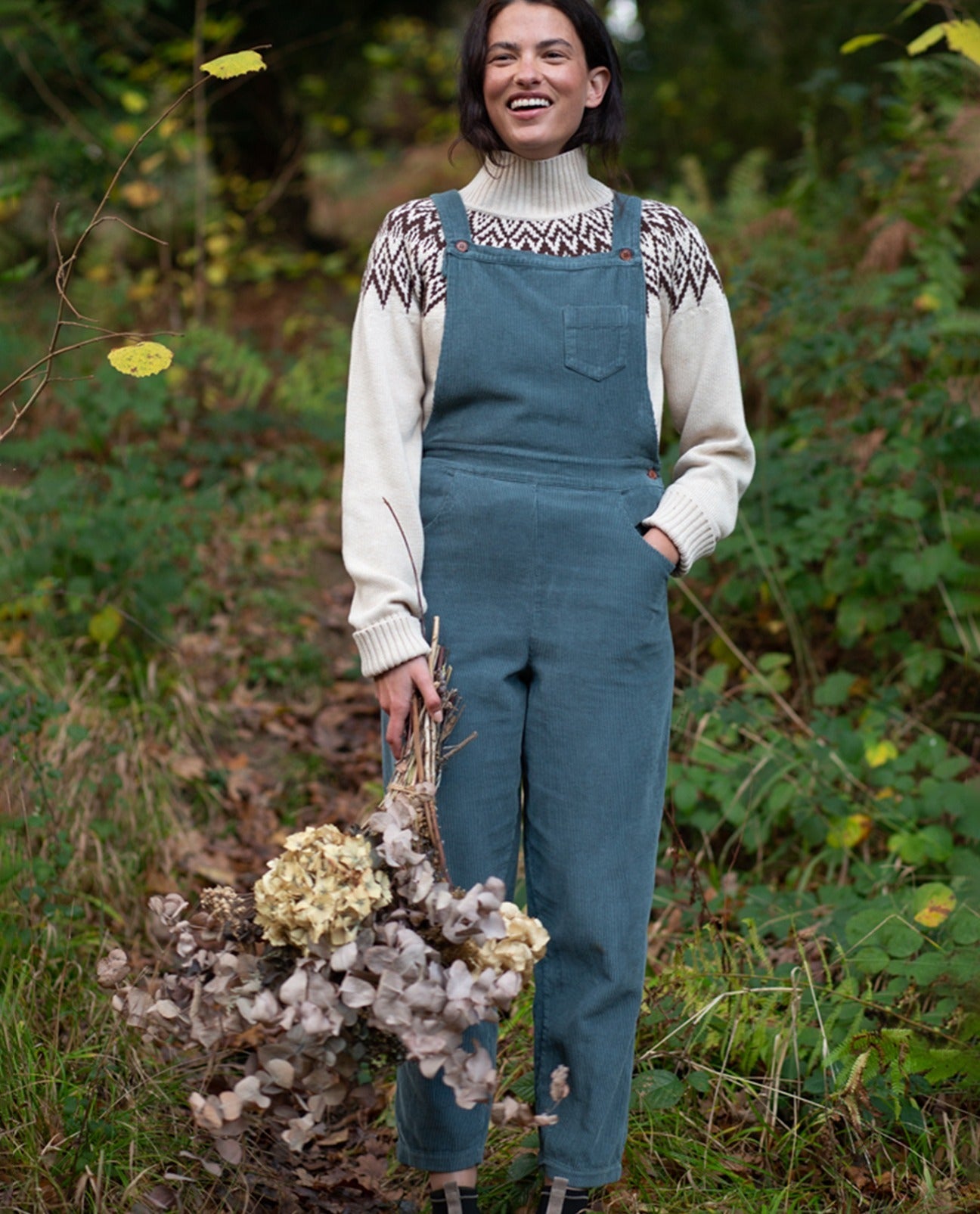 Dusty Organic Cotton Cord Dungarees in Petrol