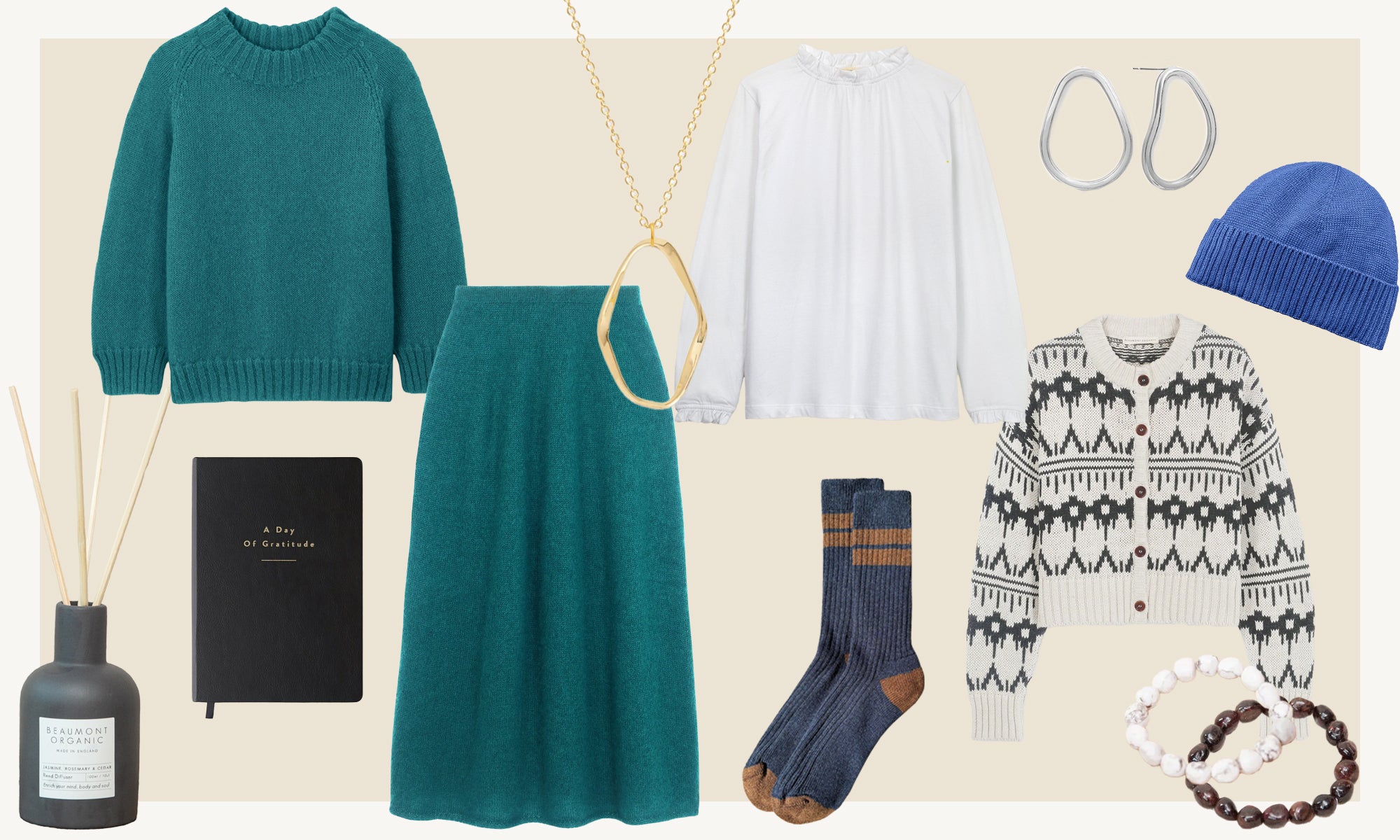 Anyone who enjoys keeping their looks stylish with minimum effort would feel elevated in our beautifully soft mohair knits. Our Solstice jumper and Rosalia skirt in this pine green colour-way is chic and are sure to be wardrobe staples for years to come. Alternatively, the stunning Sugi-Sue cardigan creates a signature style all on its own, paired with those reliable jeans we all have in our closets. Simple, classic jewellery completes this look. At the end of the day, the Minimalist can unwind with the A Day of Gratitude journal and our nature inspired scented reed diffusers.