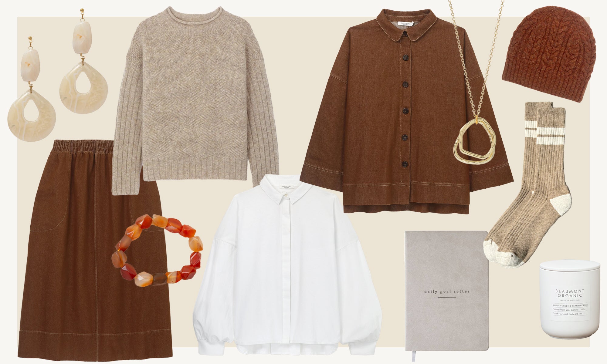 For the busy person short on time, this tonal palette combines versatility with functionality. Our Dylan-Leigh recycled cotton denim jacket pairs beautifully with our Alma-leigh recycled cotton denim skirt for a practical, comfortable and stylish look. Layering up pieces to accommodate changing temperatures throughout an active, on-the-go day is essential. A crisp white cotton shirt overlaid by our Shika lambswool jumper is a natural breathable option for such an occasion. Complete the look with neutral accessories such as warm gold or crystal jewellery and taupe socks. Our Daily Goal Setter is an essential to sort the Multitasker's jobs for the day ahead and stay on track.