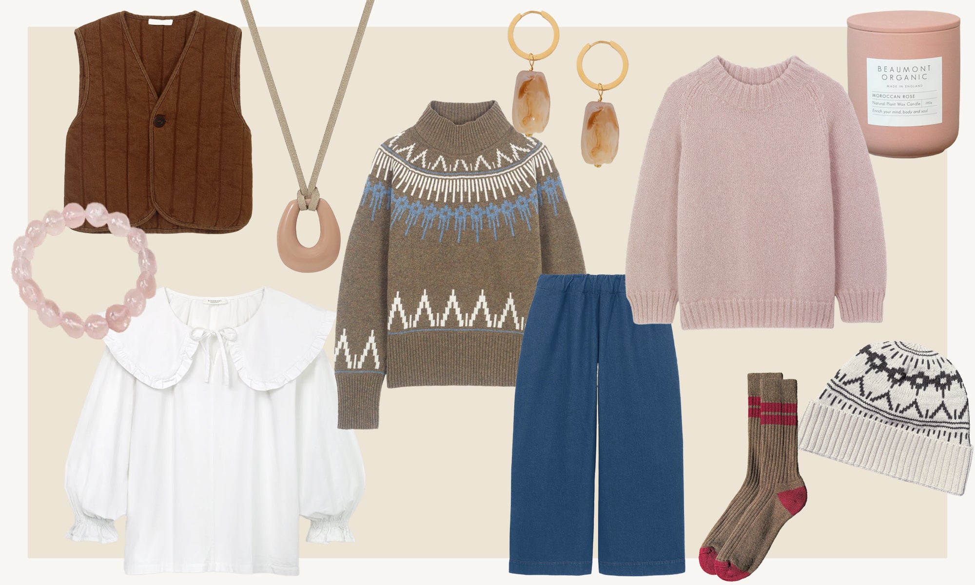 Whether it be dressed for a scenic stroll or cosied up at home, the Self-Care Queen's ultimate priority is comfort. Layers feature strong here and breathable natural fabrics are winning, along with looser fits. Our Evora-Leigh denim trousers provide the softness and convenience of a well put-together look. Style them up with a stunning knit like our Hawthorne recycled wool jumper and a gilet. For those winter walks, our selection of Evie hats keep chills at bay. Crystal jewellery supports well-being and promotes a wealth of benefits quietly. Our beautifully, naturally scented candles complete the day and ready oneself for a restful, restorative sleep.