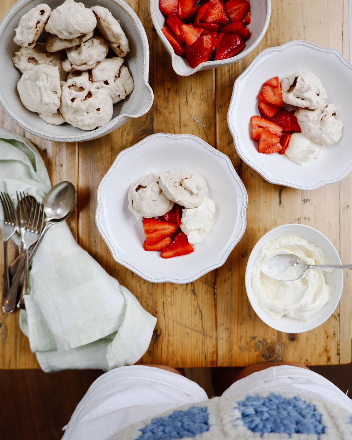 10. Serve a good scoop of the cream alongside the strawberries and 2-3 meringues per person.