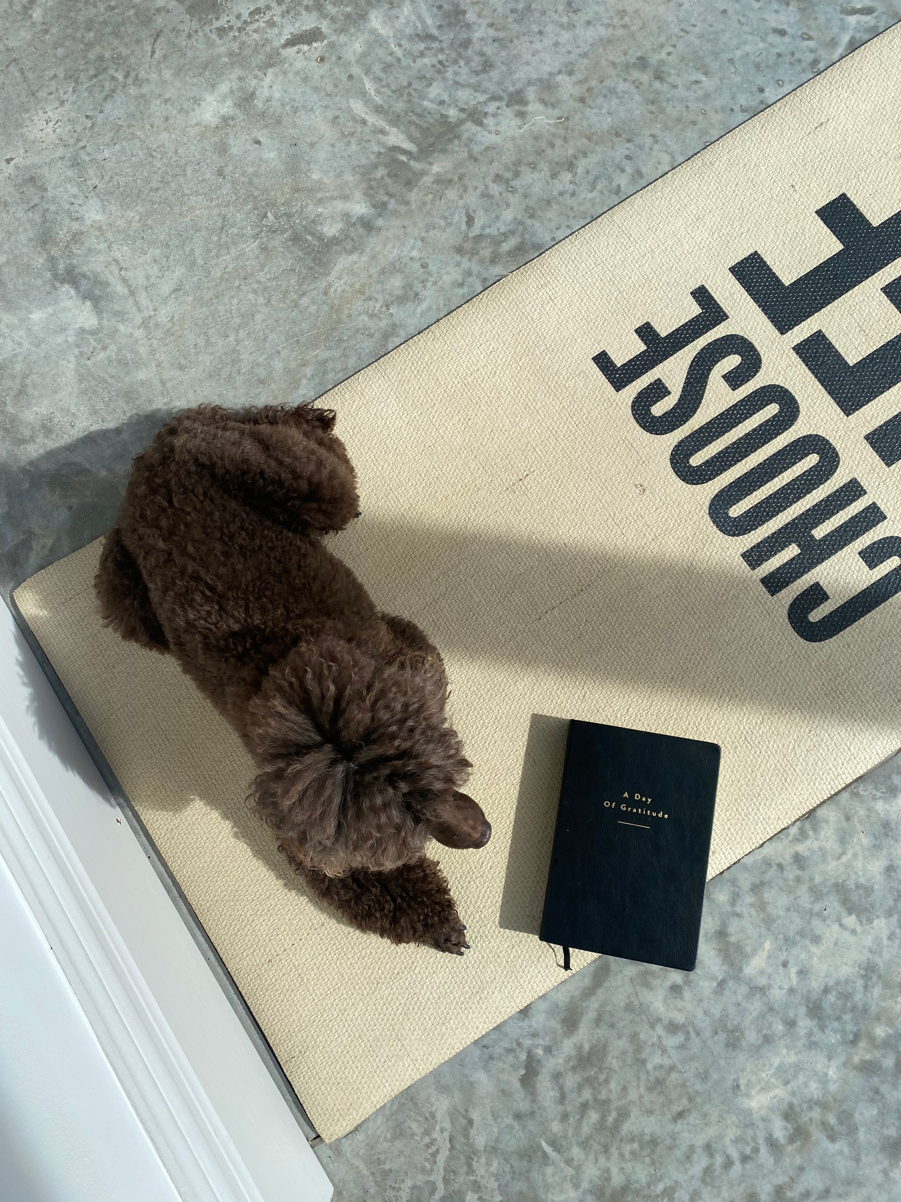 Choose a peaceful spot where you won’t be disturbed. This could be a cozy corner of your home, a spot in your garden, or even your favorite chair. For me it’s on my yoga mat with a candle lit.