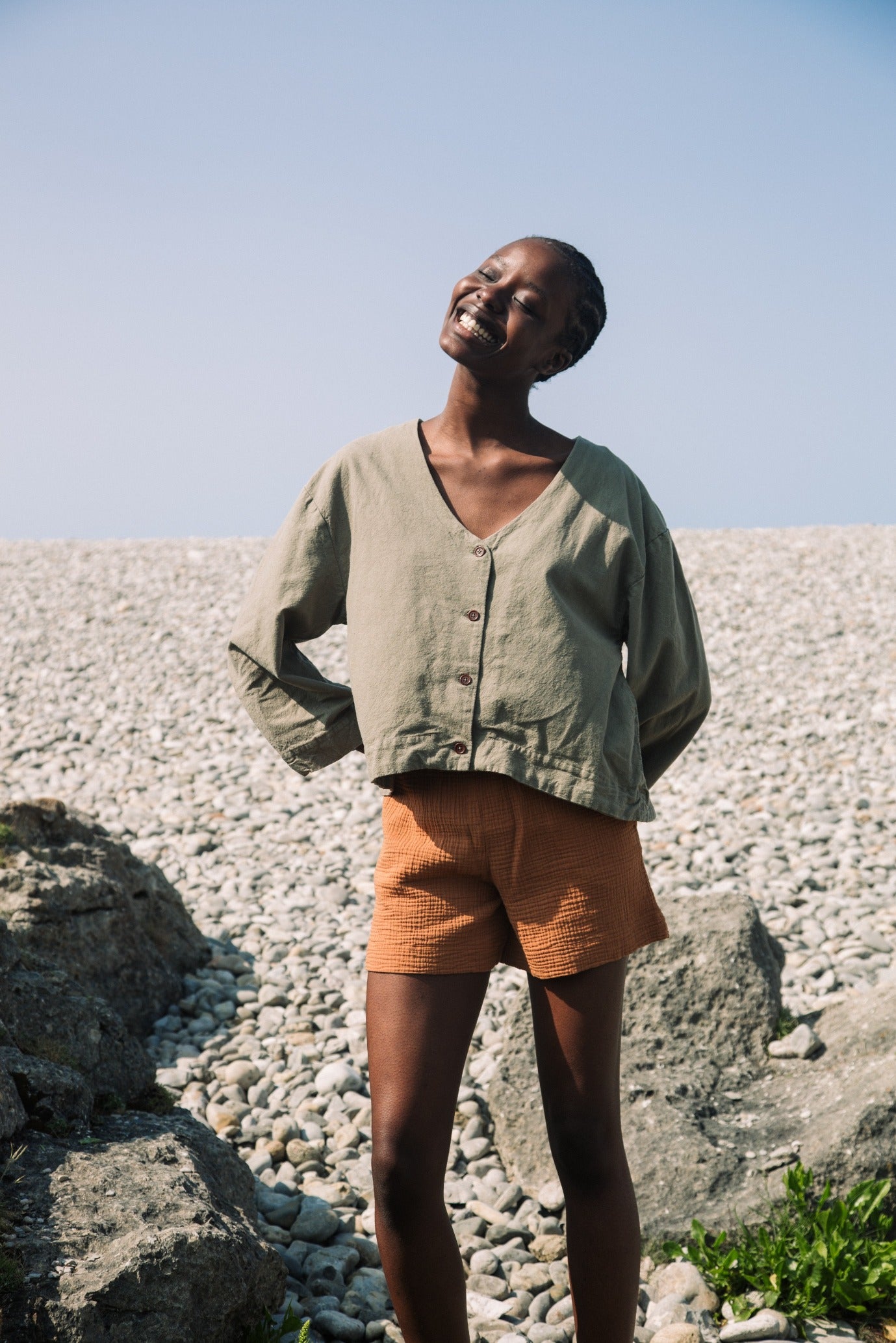 Calder Cotton Linen Shirt in Khaki