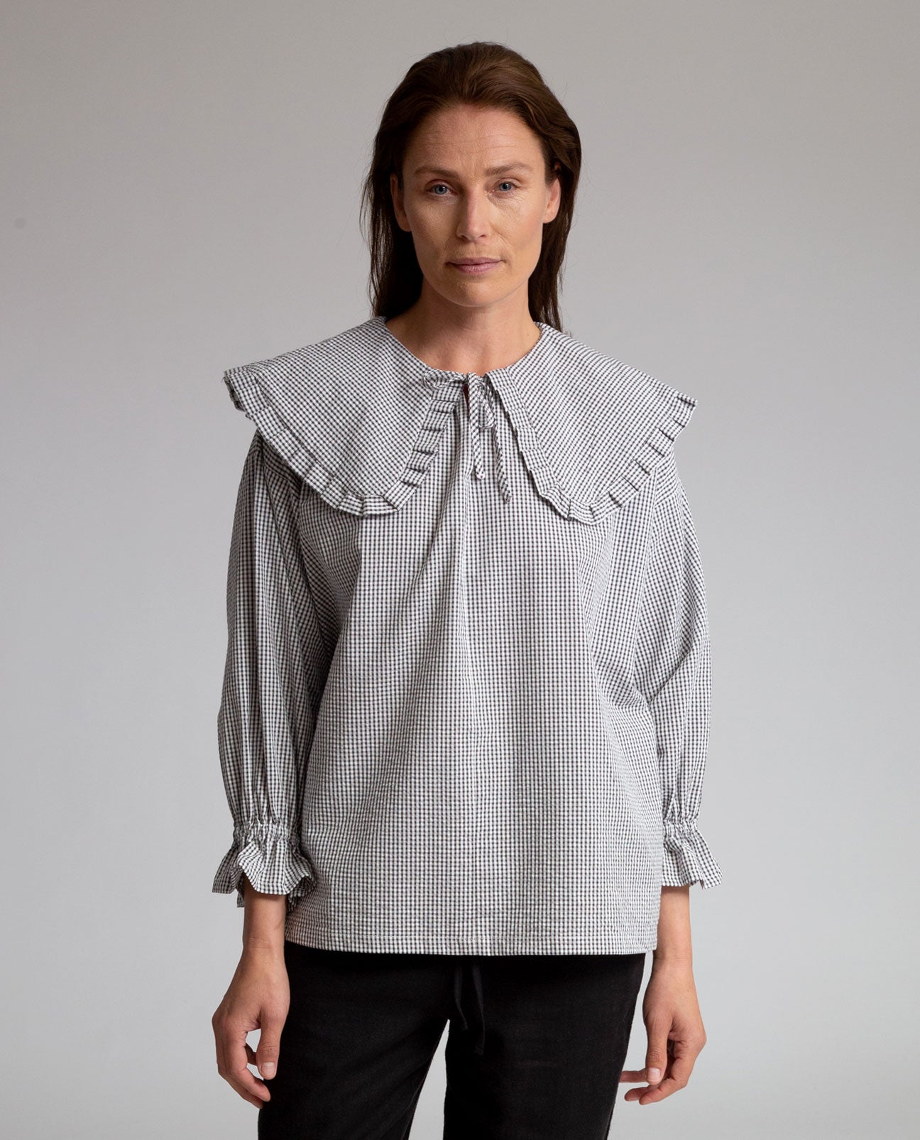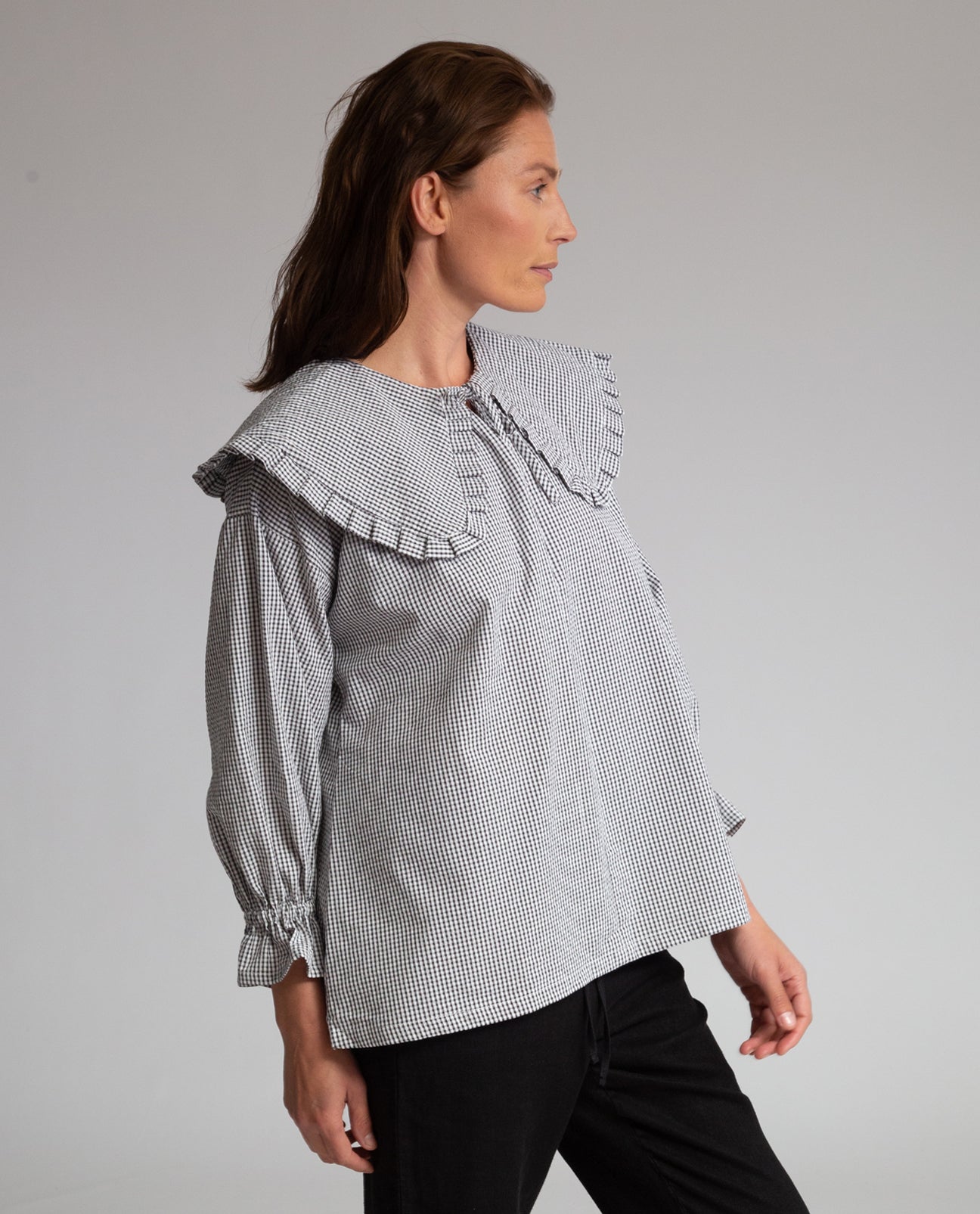 Camilla Organic Cotton Gingham Top in Black