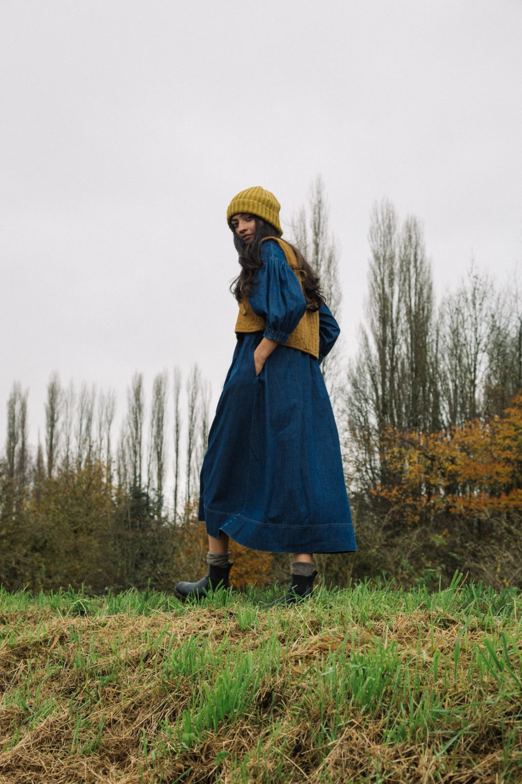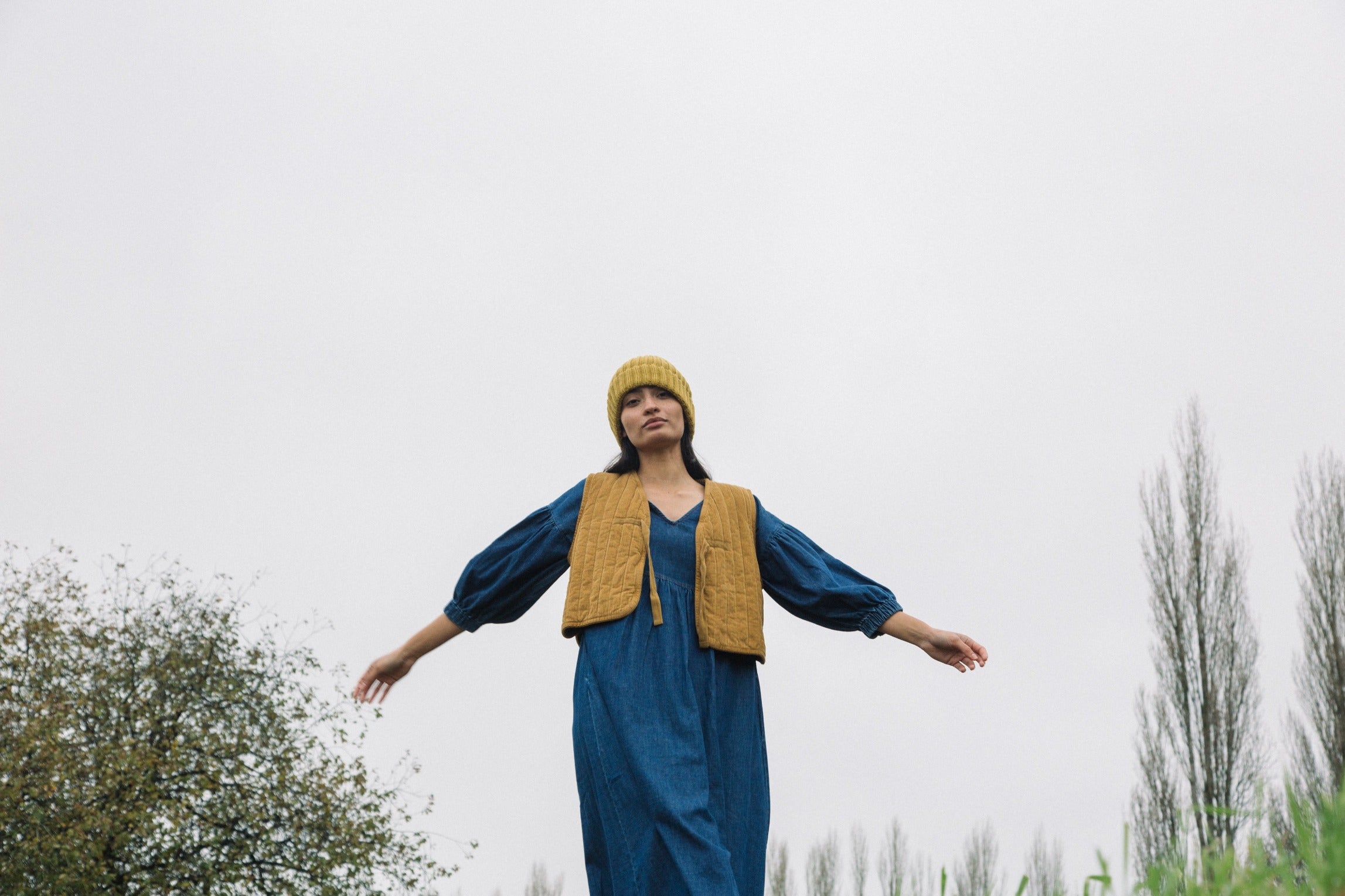 Evergreen Organic Cotton Cord Gilet in Ochre