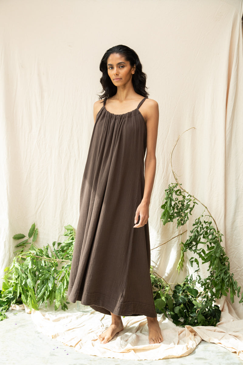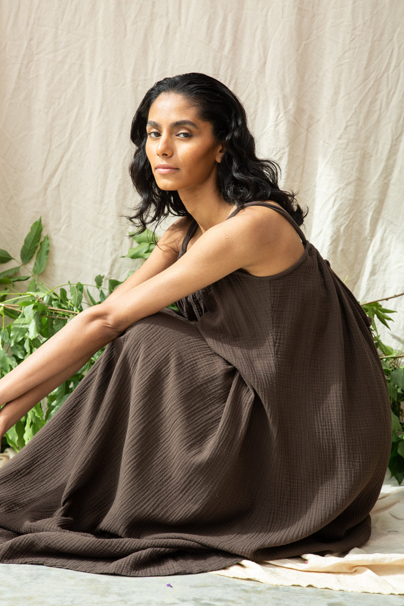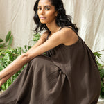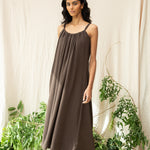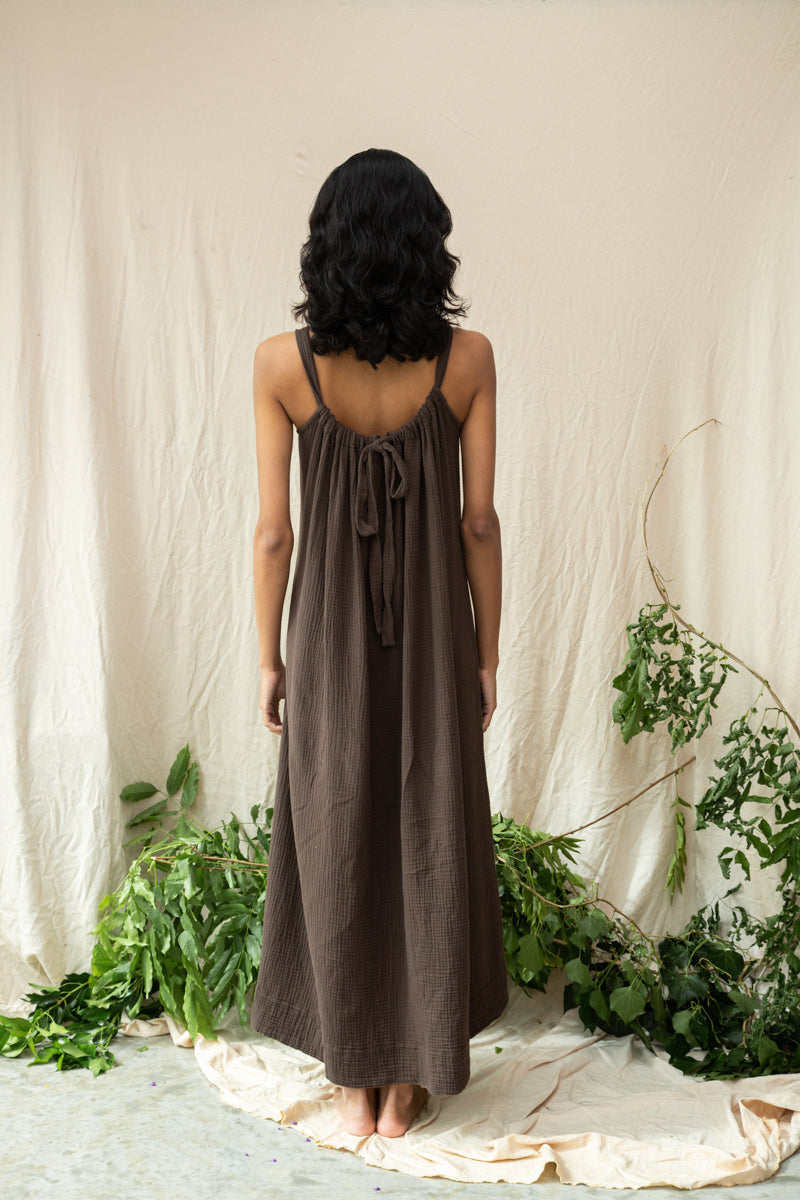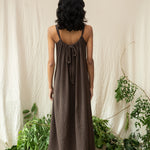 The Wilder Dress is a strappy sundress style featuring an A-line skirt, side pockets, scoop back and ruched drawcord neckline.