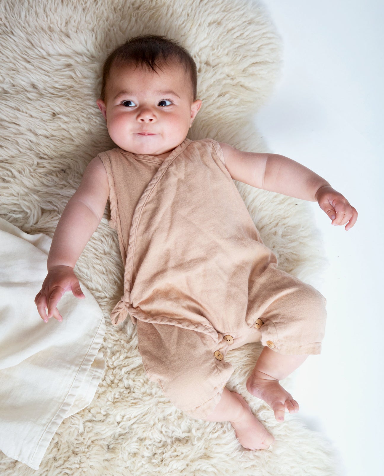 The Evan romper is made from super soft organic cotton, which is gentle against delicate and sensitive skin. Featuring button fastening at the legs and a tie at the chest, this romper would make the perfect gift to anyone preparing to welcome a new arrival.