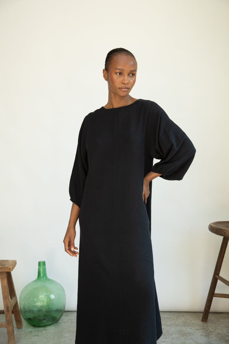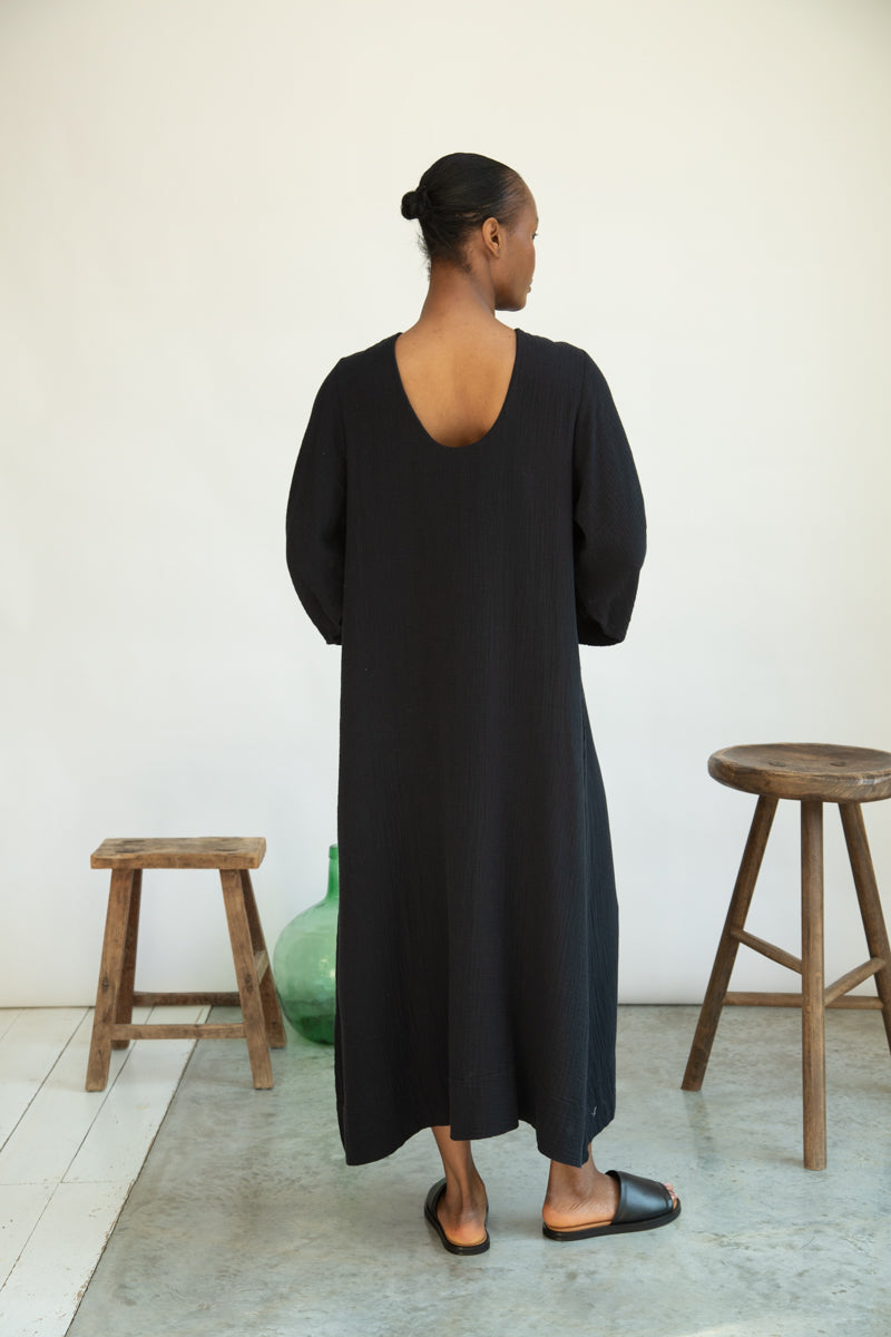 Henrietta Organic Cotton Cheesecloth Dress in Black