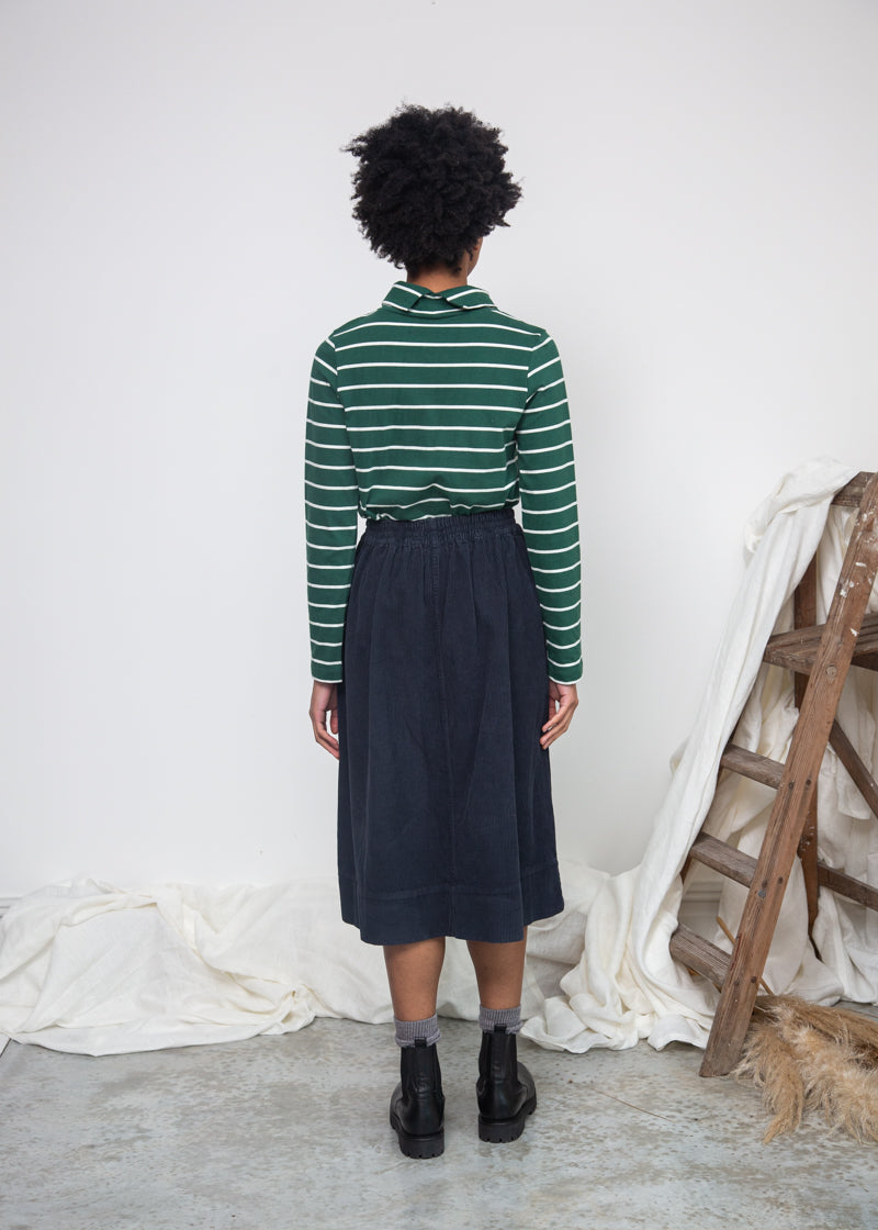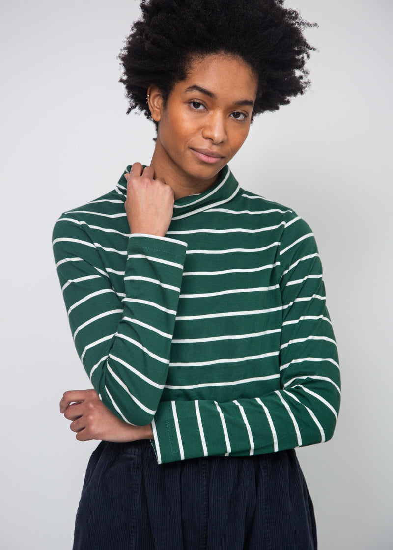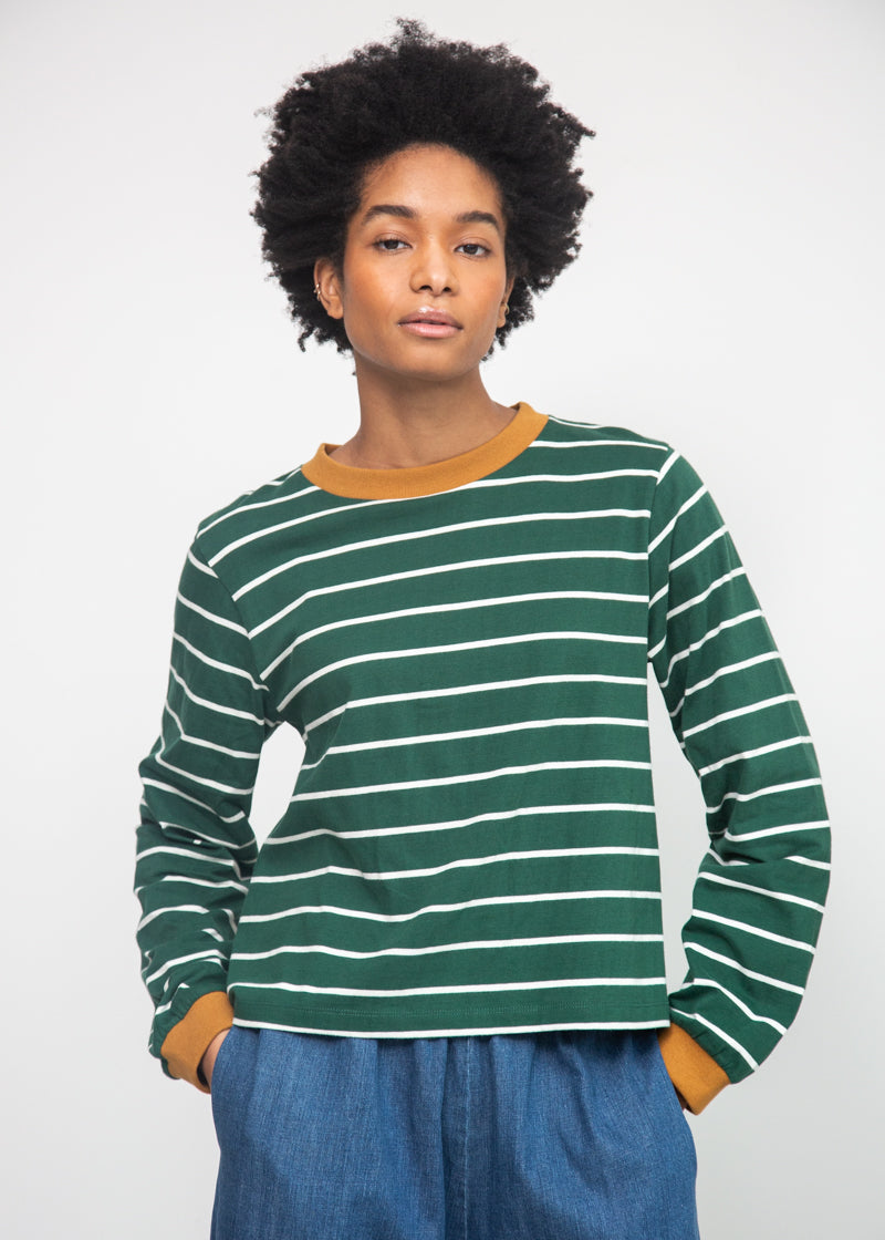Sierra-Sue Organic Cotton Stripe Jersey Top in Pine Green & Off White Stripe