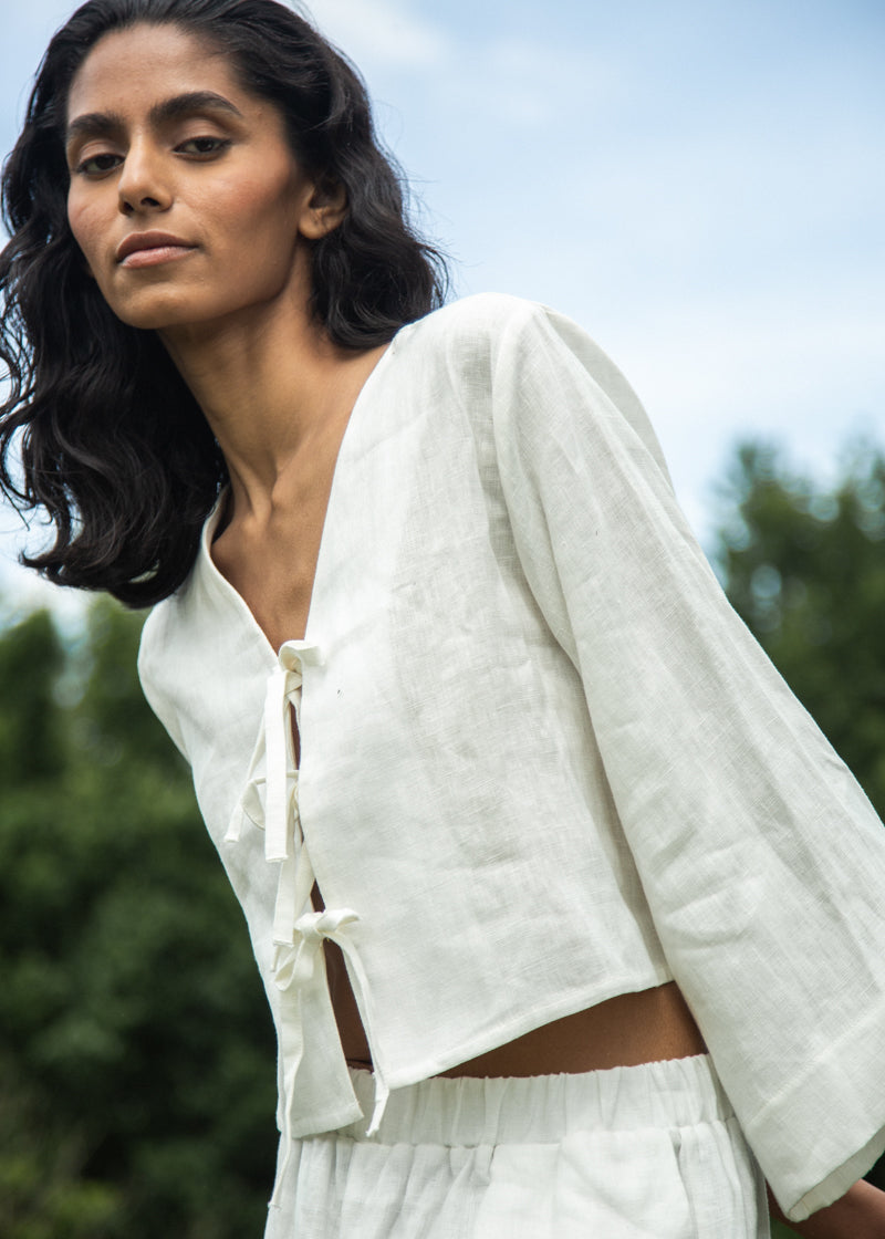 Sugi-Sue Organic Cotton Knitted Cardigan in Ecru Marl