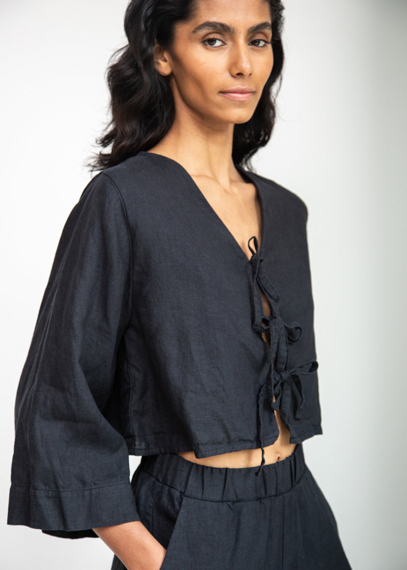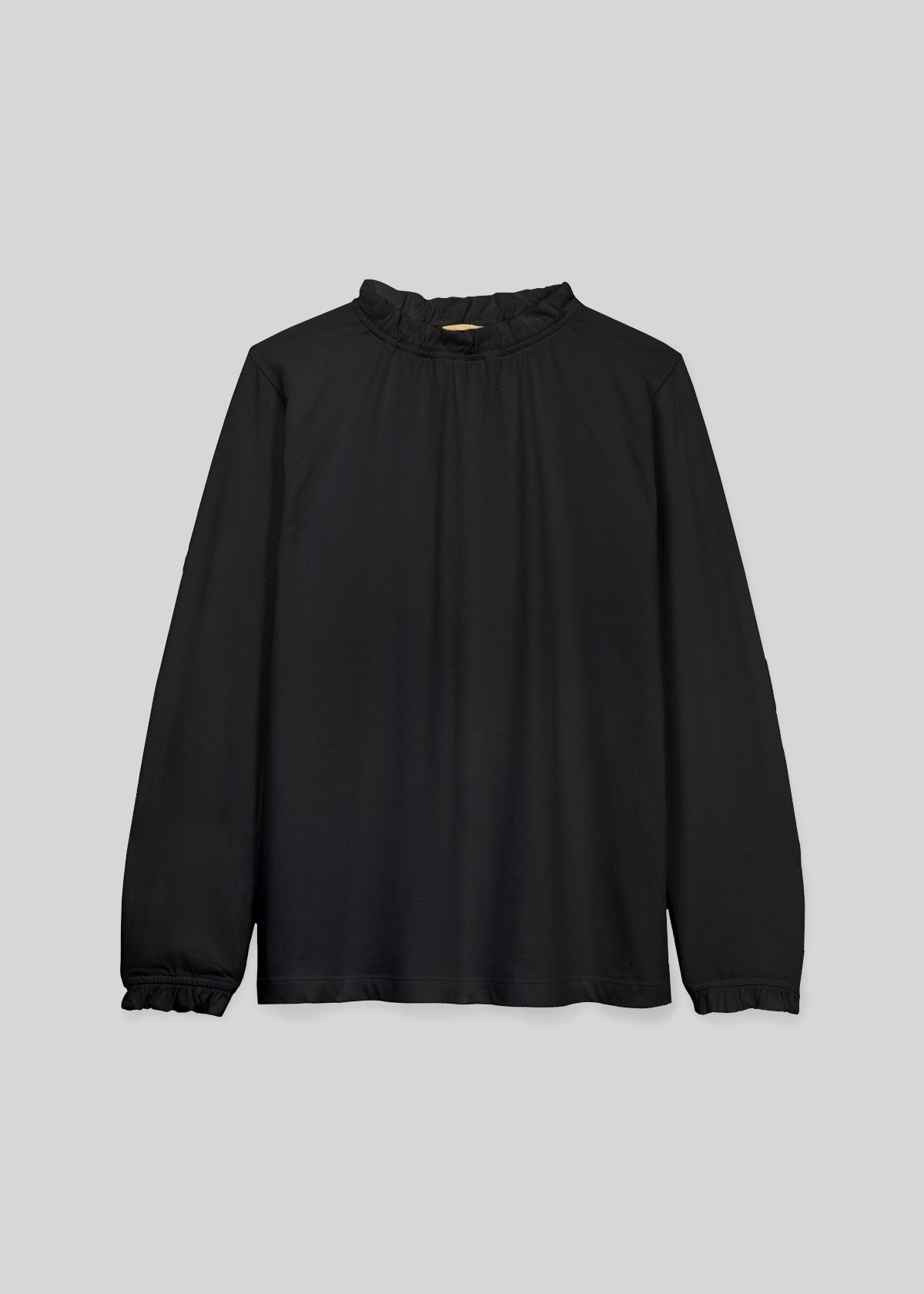 Konara Organic Cotton Jersey and Poplin Shirt in Black