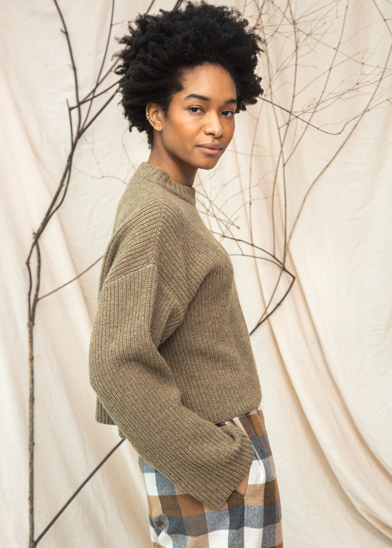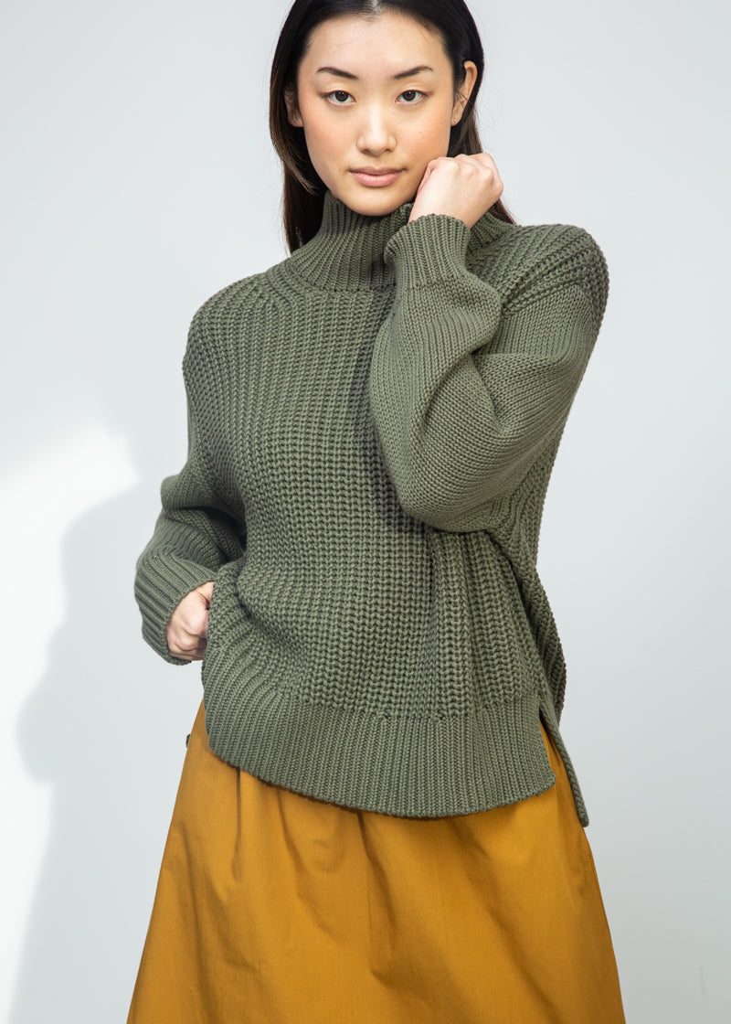 Tora Organic Cotton Knitted Jumper in Soft Khaki