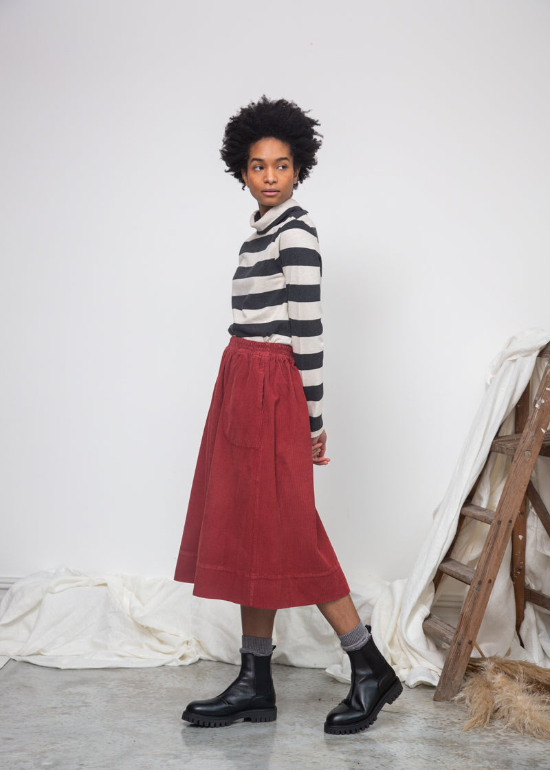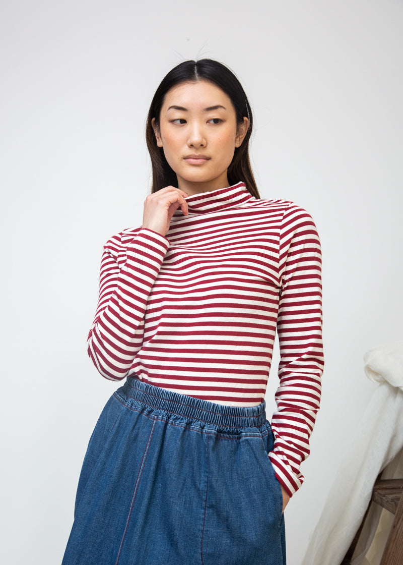 Leia-Sue Organic Cotton Stripe Jersey Top in Burgundy & Off White Stripe