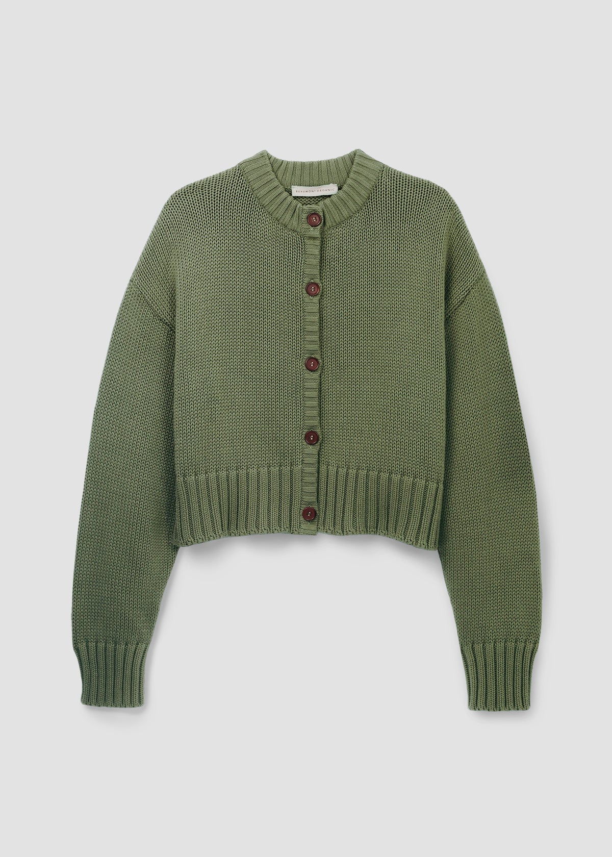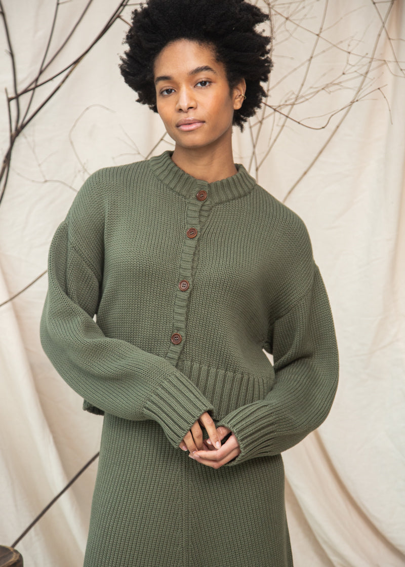 Sugi Organic Cotton Knitted Cardigan in Soft Khaki