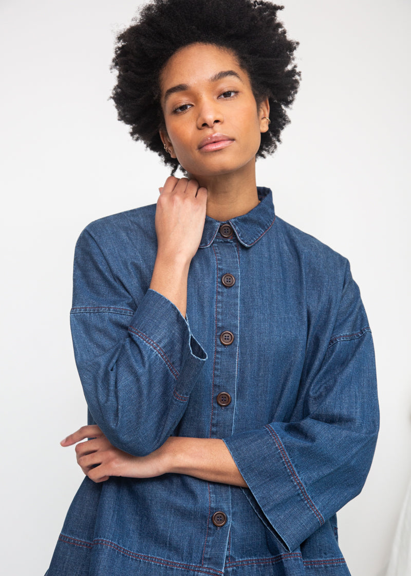 Dylan-Leigh Organic Cotton Denim Overshirt in Mid Blue