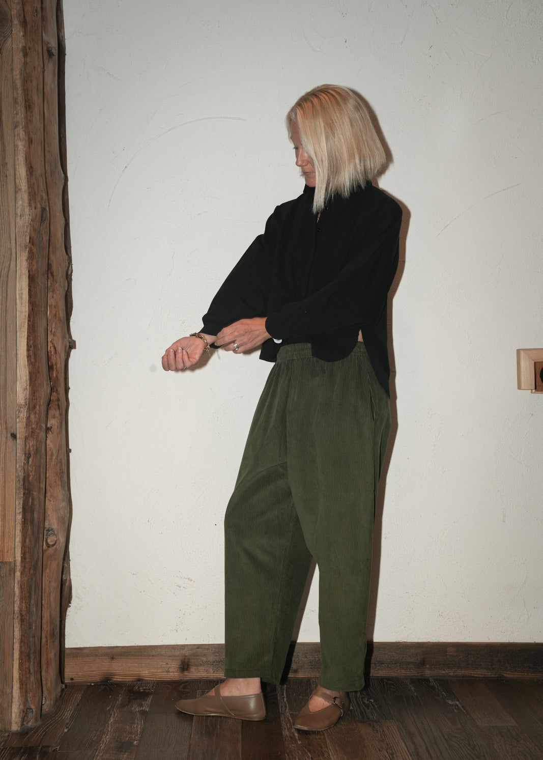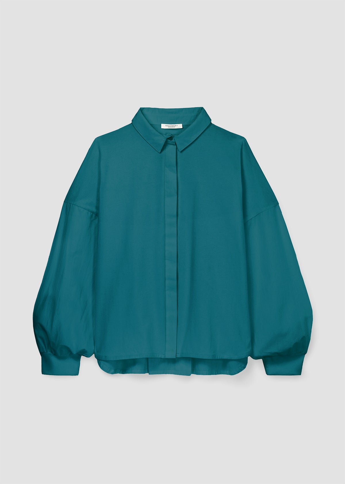Konara Organic Cotton Jersey and Poplin Shirt in Pine