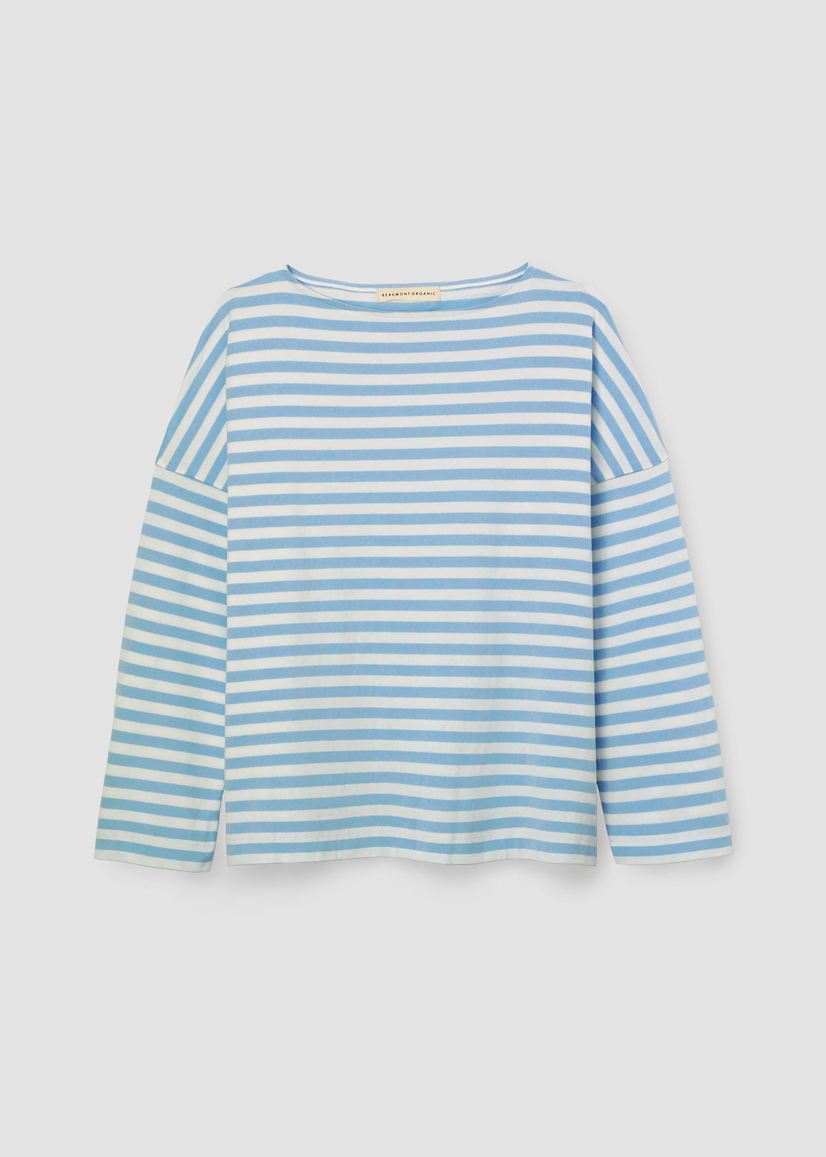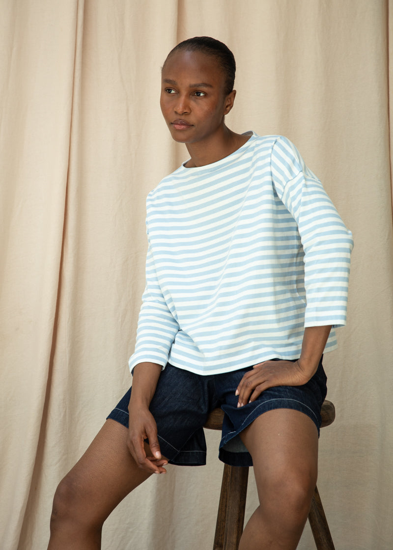Leia-Sue Organic Cotton Jersey Stripe Top in Pale Blue & White Stripe