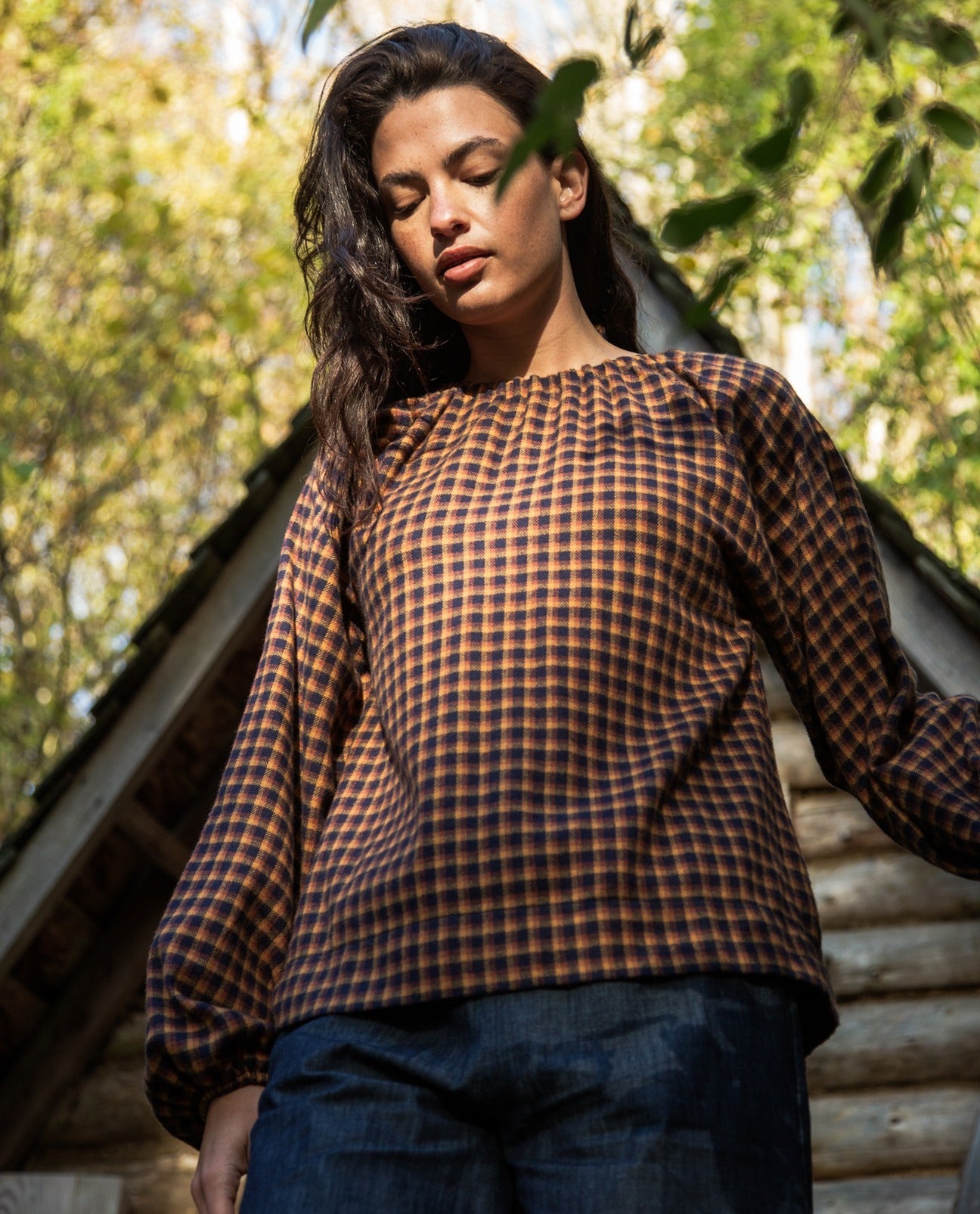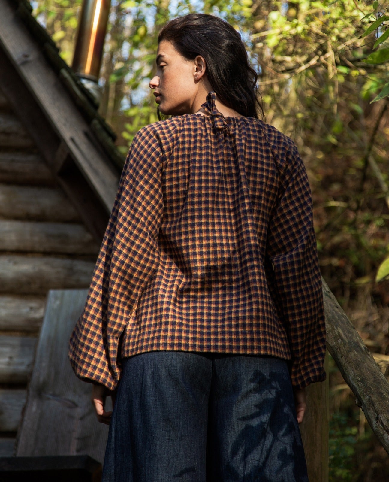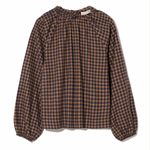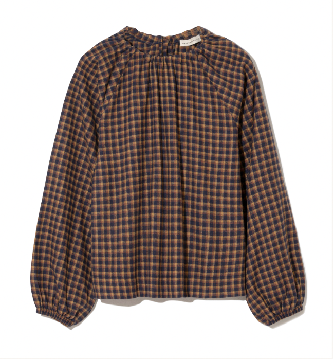 Elodie-Cay Organic Cotton Brushed Twill Blouse in Navy and Mustard Check