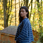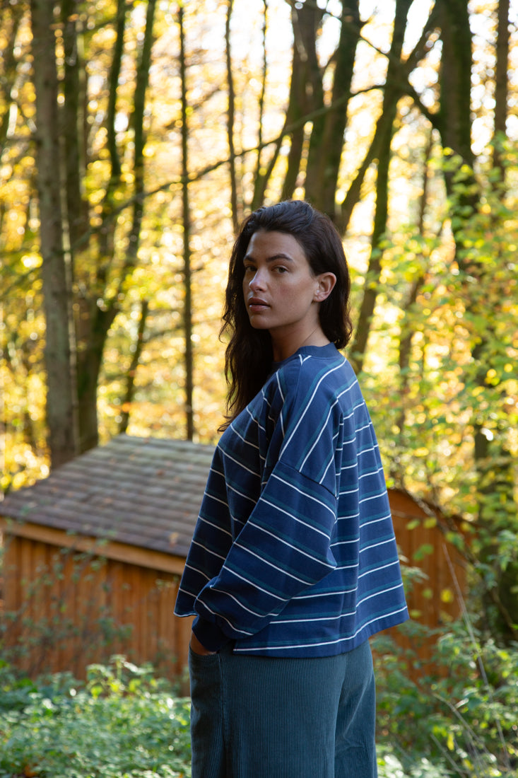 Serenity-Sue Organic Cotton Sweatshirt in Petrol and Off White Stripe