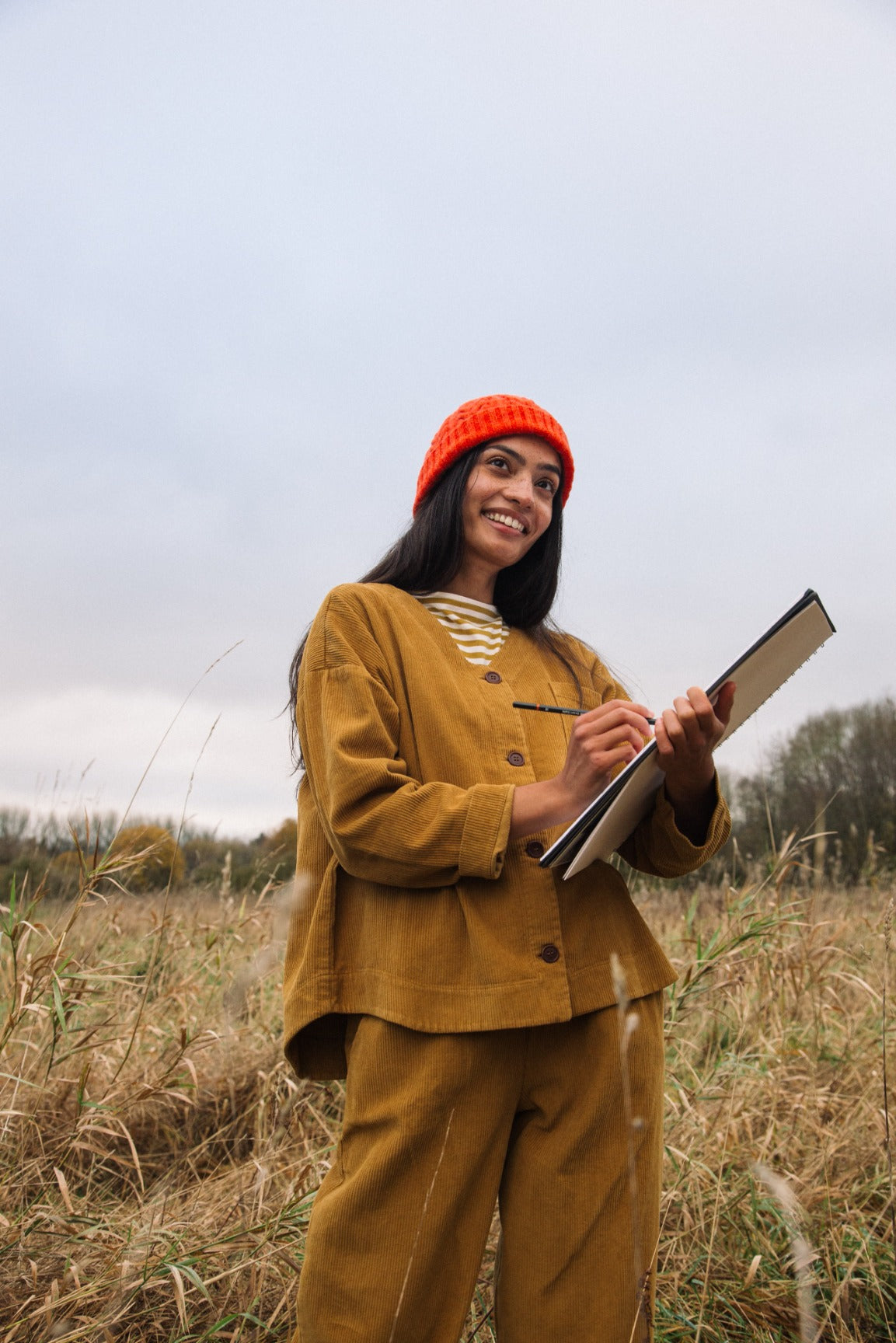 The Acer Shirt is a boxy V-neck style with a button down front and full length sleeves. Features a front patch pocket on the left chest.