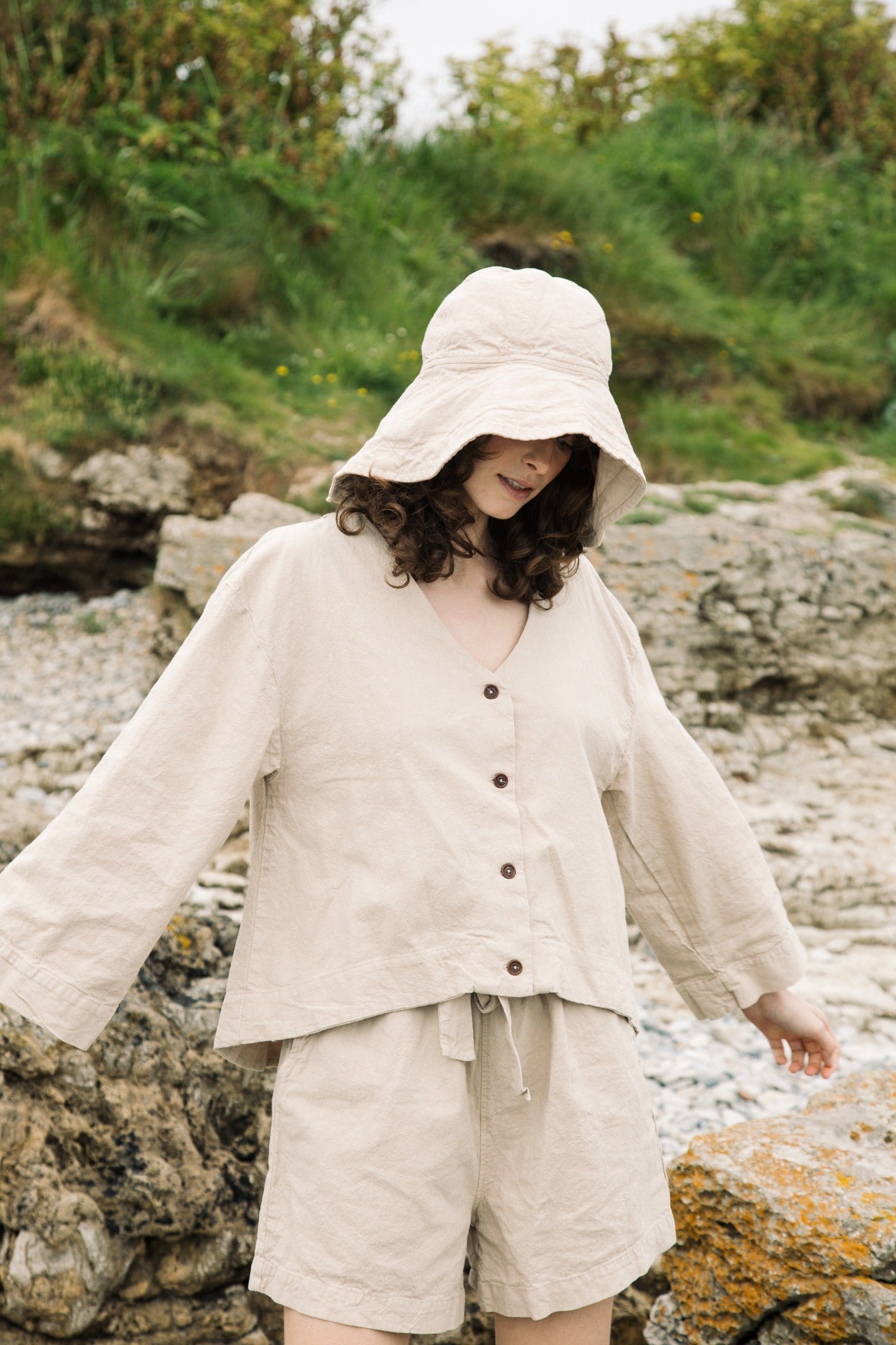 Part of our Premium Cotton / Linen capsule collection, the Calder is a button down shirt with a V-neckline and 3/4 length sleeves.