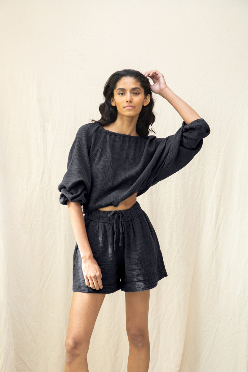 The Cordelia top is an elegant long sleeved style, crafted from our signature organic cotton cheesecloth fabric for a soft textured feel.