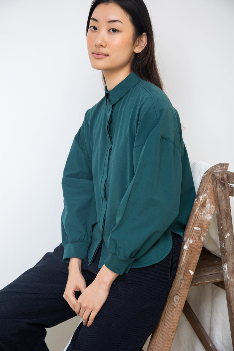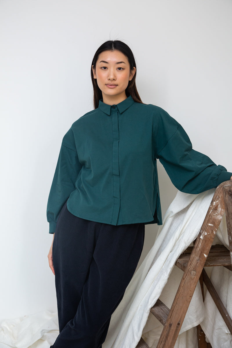 Konara Organic Cotton Jersey and Poplin Shirt in Pine