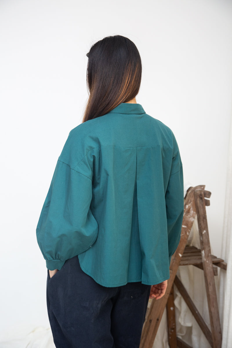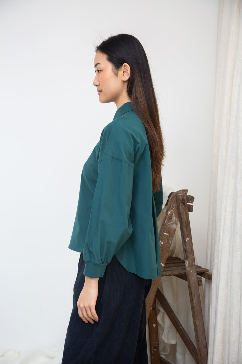 The Konara is a modern take on traditional shirting, featuring a balloon sleeve with elasticated cuff and box pleat detail at the back.