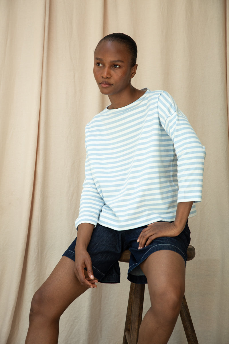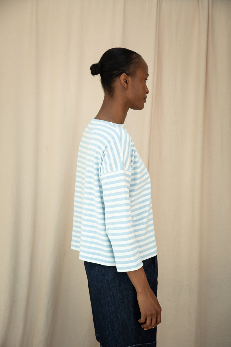 Leia-Sue Organic Cotton Jersey Stripe Top in Pale Blue & White Stripe