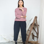 Leia-Sue Organic Cotton Stripe Jersey Top in Burgundy & Off White Stripe