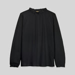 The Pearl is a long sleeved top with a subtle ruffle detail at the neck and cuffs.