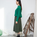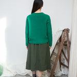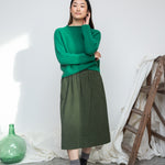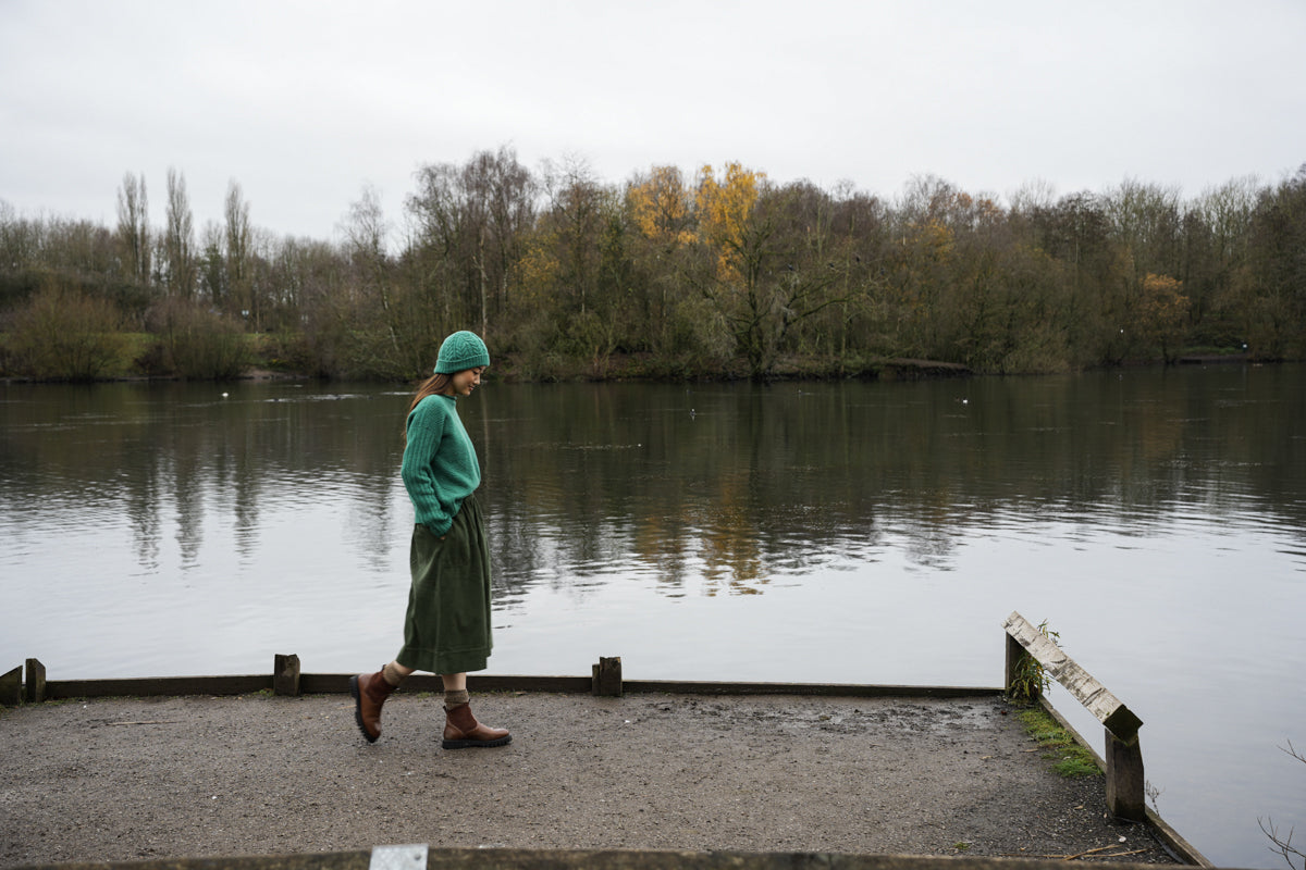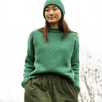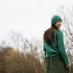 The Shika is new lambswool knit featuring a playful rolled round neck, full rib sleeve, and chevron stitch detail across the body.
