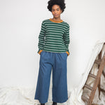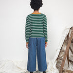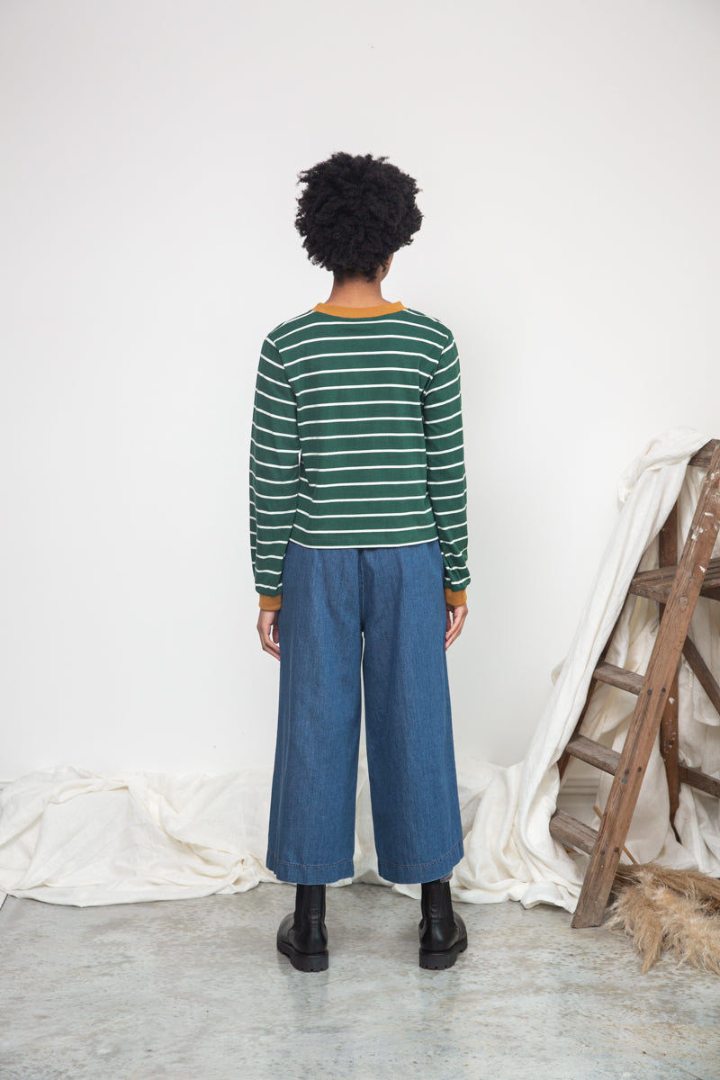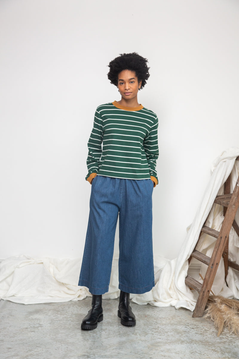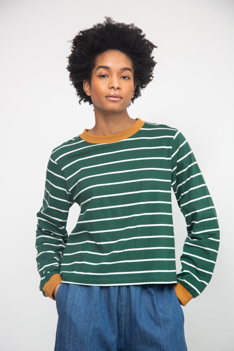 Sierra-Sue Organic Cotton Stripe Jersey Top in Pine Green & Off White Stripe