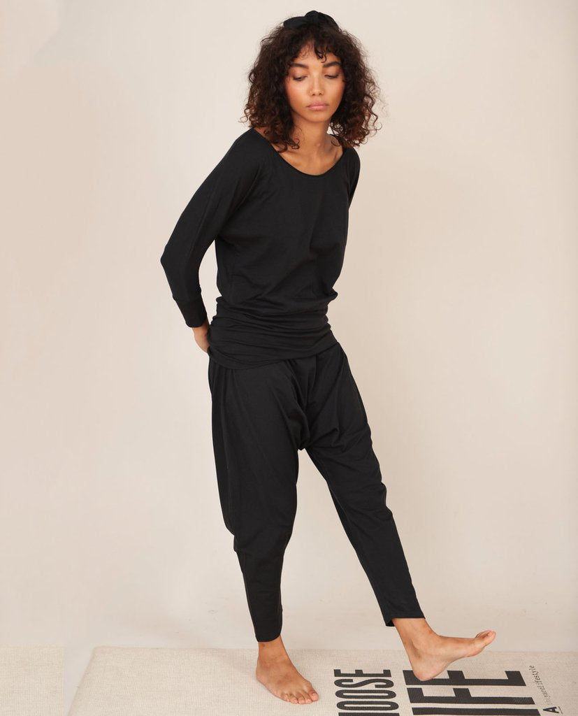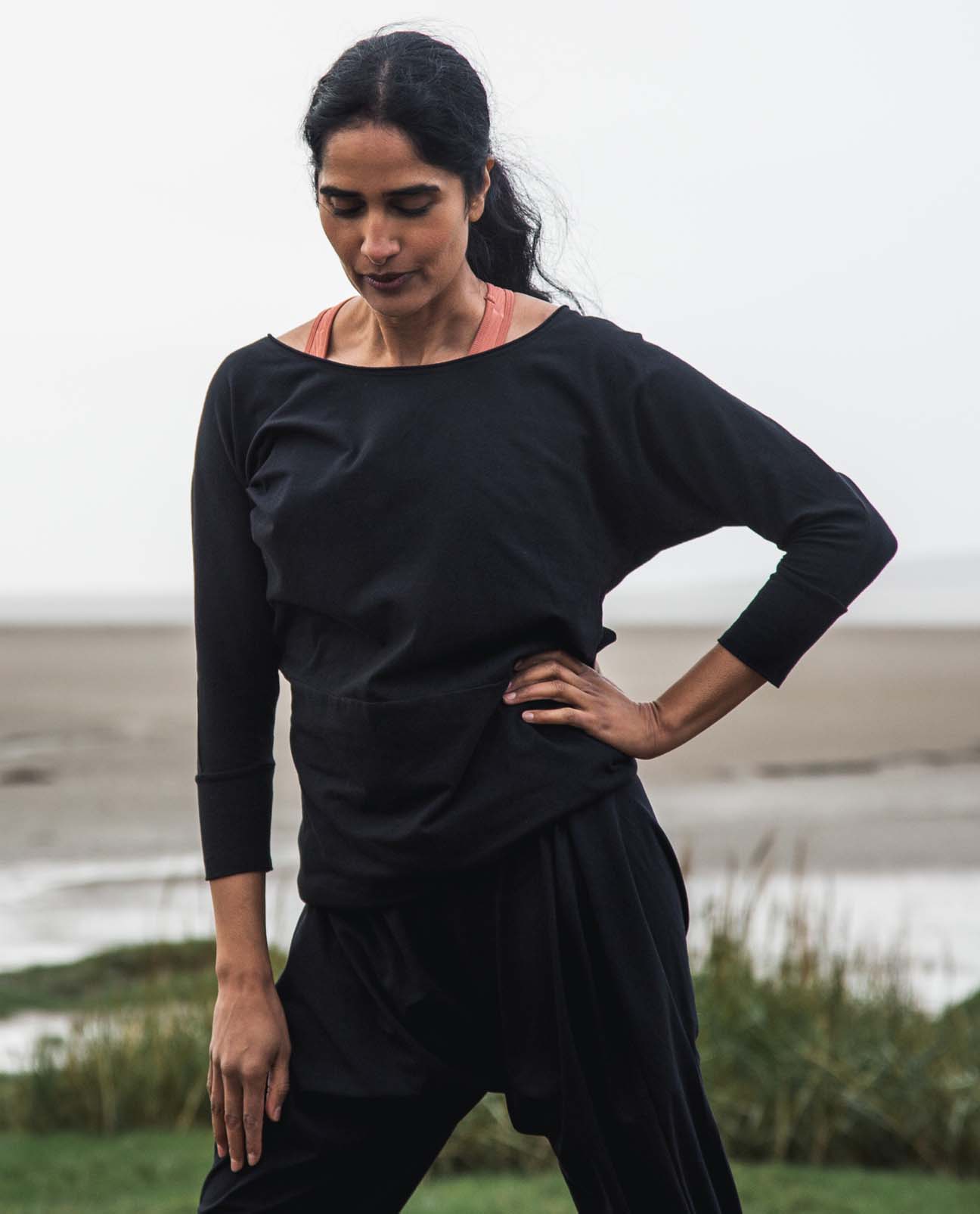 Miakoda Organic Cotton Yoga Batwing Top In Black