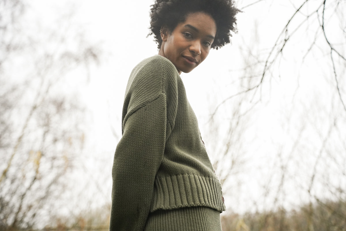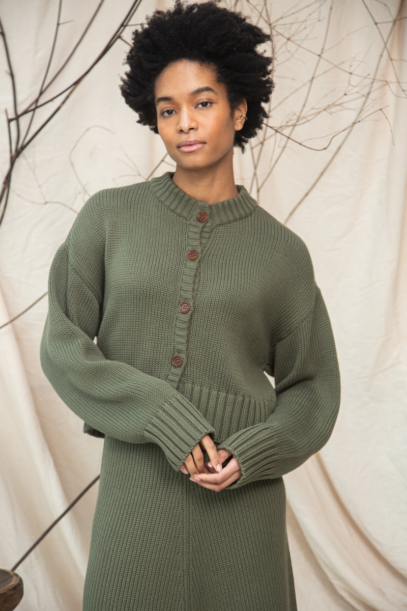 Sugi Organic Cotton Knitted Cardigan in Soft Khaki