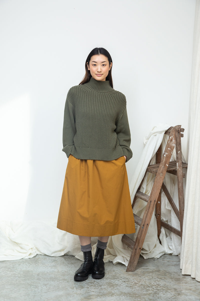 The Tora jumper is a loose fit, comfortable style made from ribbed organic cotton featuring a funnel neck.