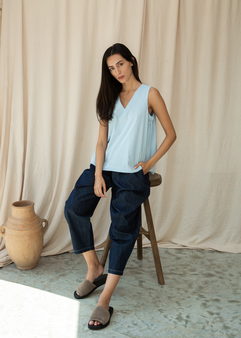 Mazu Organic Cotton Poplin Trouser in Powder Blue