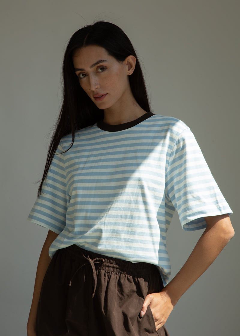 Bay-Sue Organic Cotton Jersey Stripe Top in Pale Blue & White Stripe