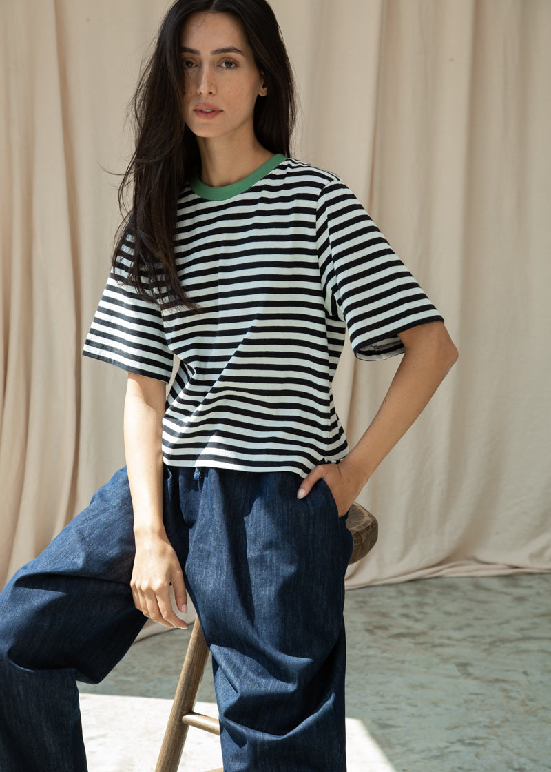 Bay-Sue Organic Cotton Jersey Stripe Top in Black & White Stripe