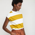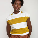 Aukai-Sue Organic Cotton Top in Olive and White Bold Stripe