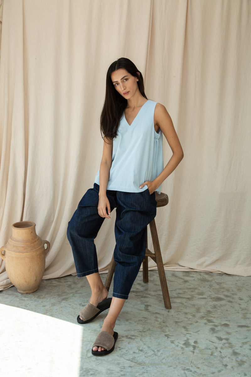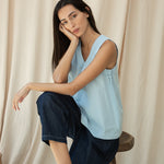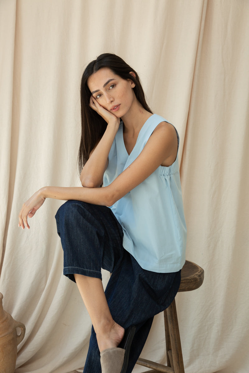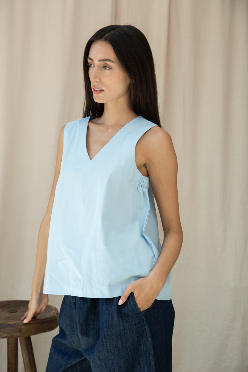 Azure Organic Cotton Poplin Top in Powder Blue
