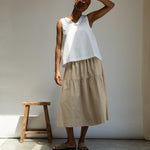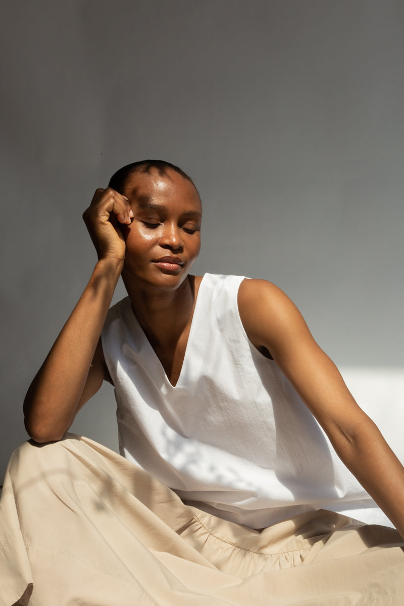 Styled here with our Cecilia Organic Cotton Poplin Skirt.