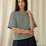 Bay-Sue Organic Cotton Jersey Stripe Top in Black & White Stripe