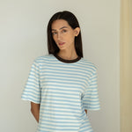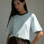 Bay-Sue Organic Cotton Jersey Stripe Top in Pale Blue & White Stripe