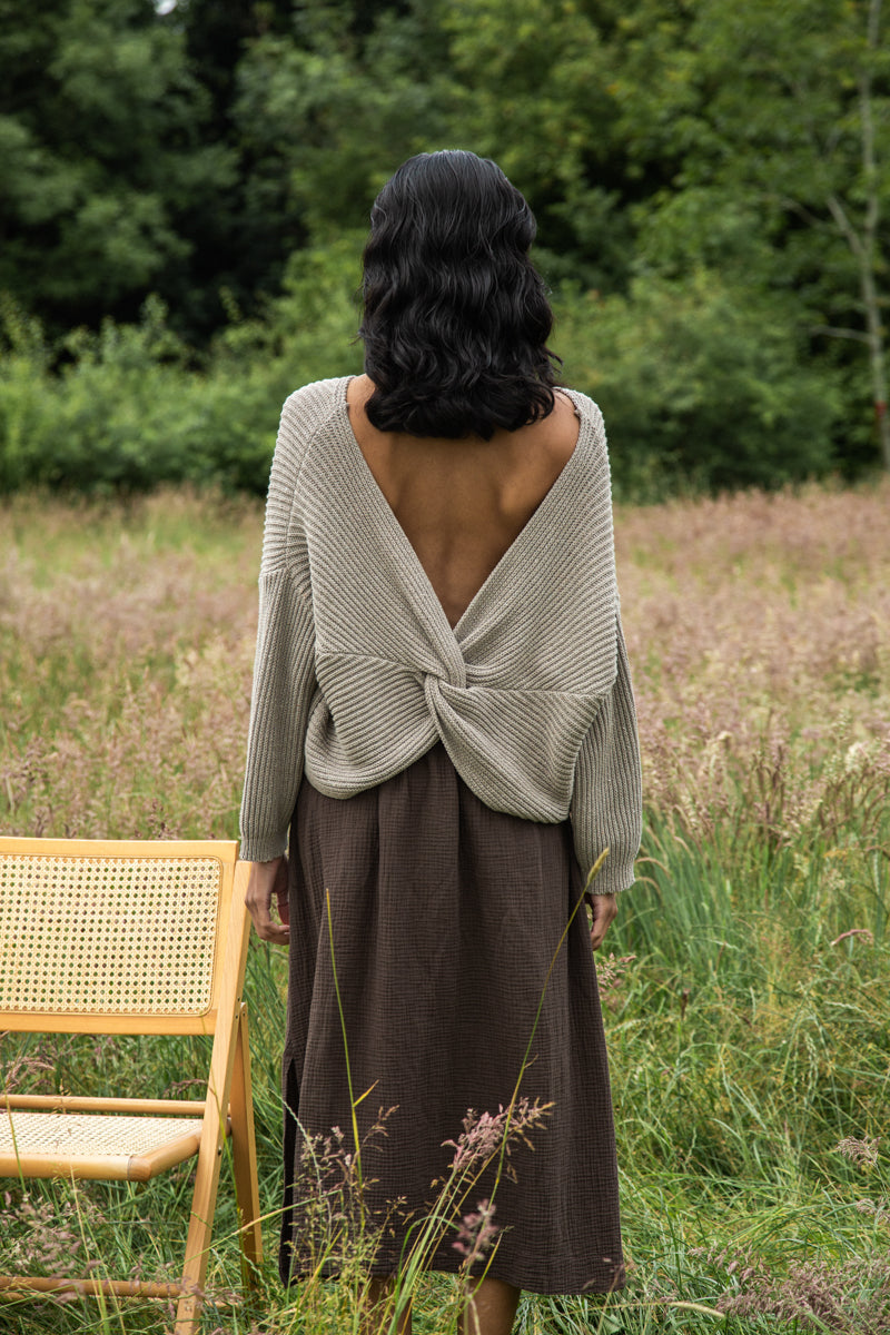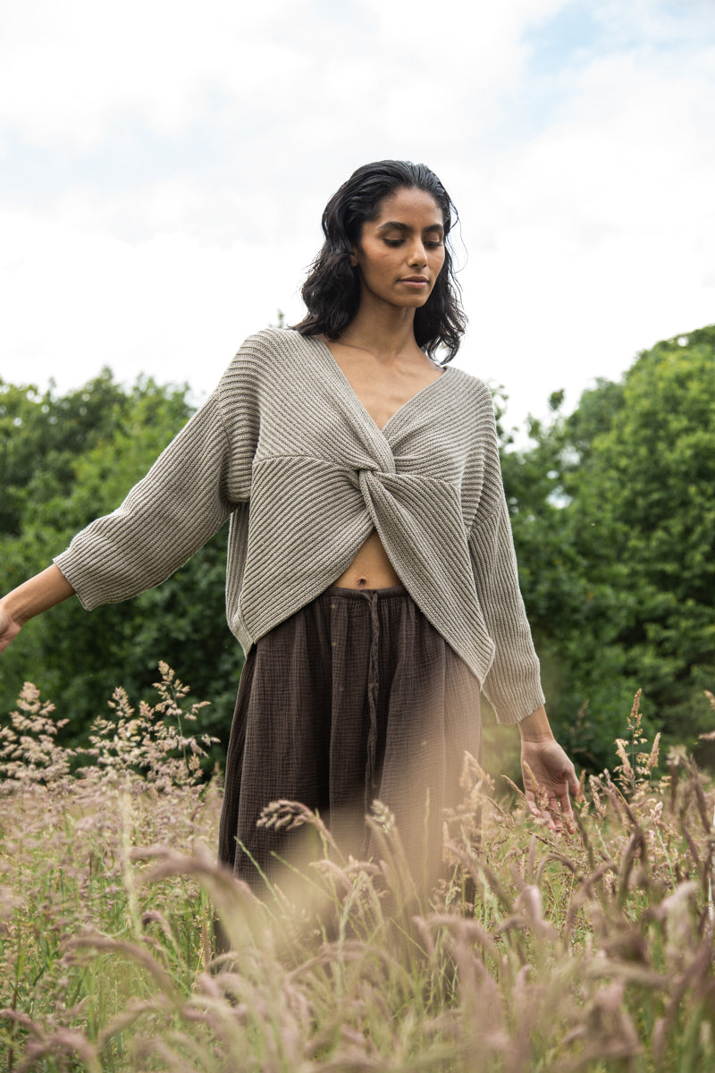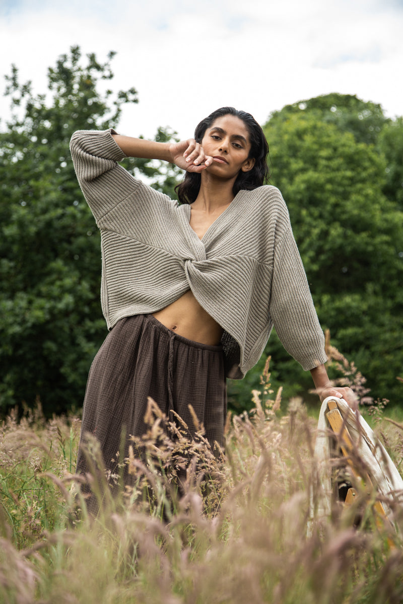 The Brooke-Leigh is a versatile statement knit that can be worn with the twist detail to the front or back. It features a rib knit, drop shoulder and fitted rib cuffs.
