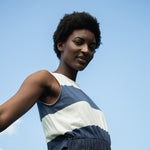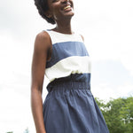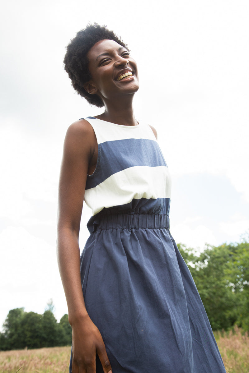 Cece-Sue Organic Cotton Dress in Midnight and White Bold Stripe