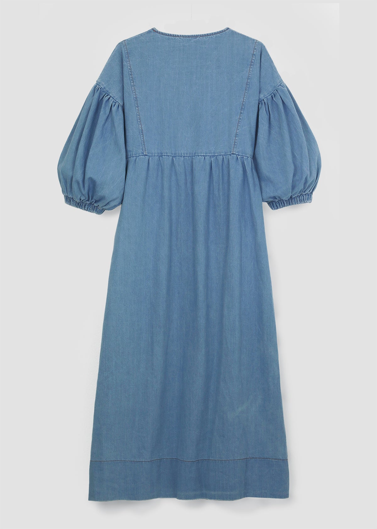 Crafted from beautiful organic cotton denim, this dress can be paired with simple accessories for daytime, whilst the statement shape can also be dressed up for an evening.